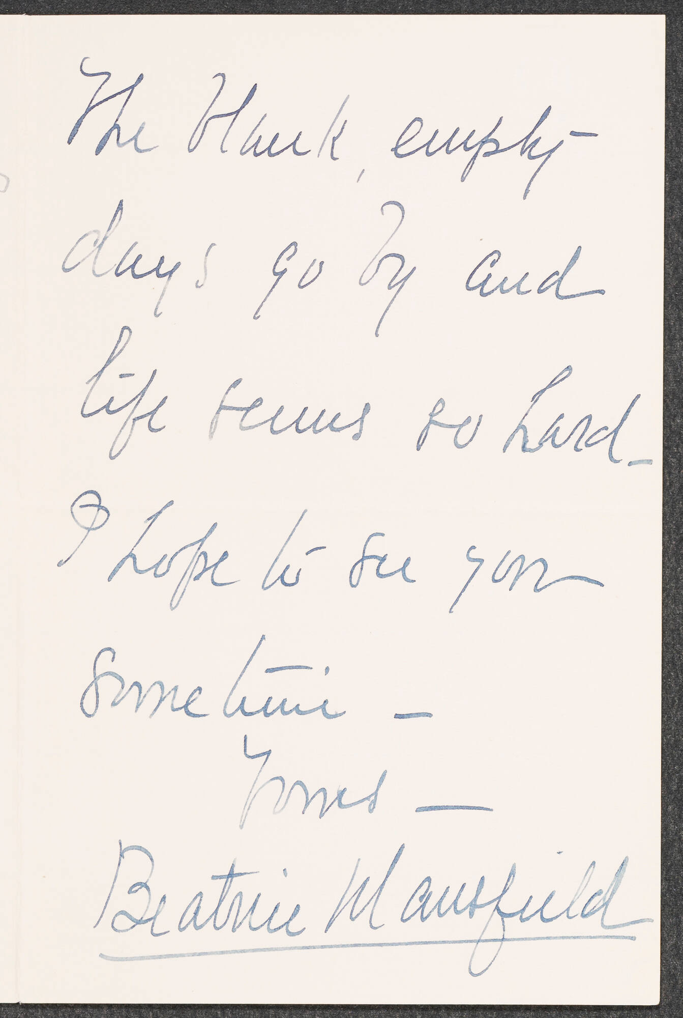 Inscribed in ink (envelope recto, upper left): Mansfield