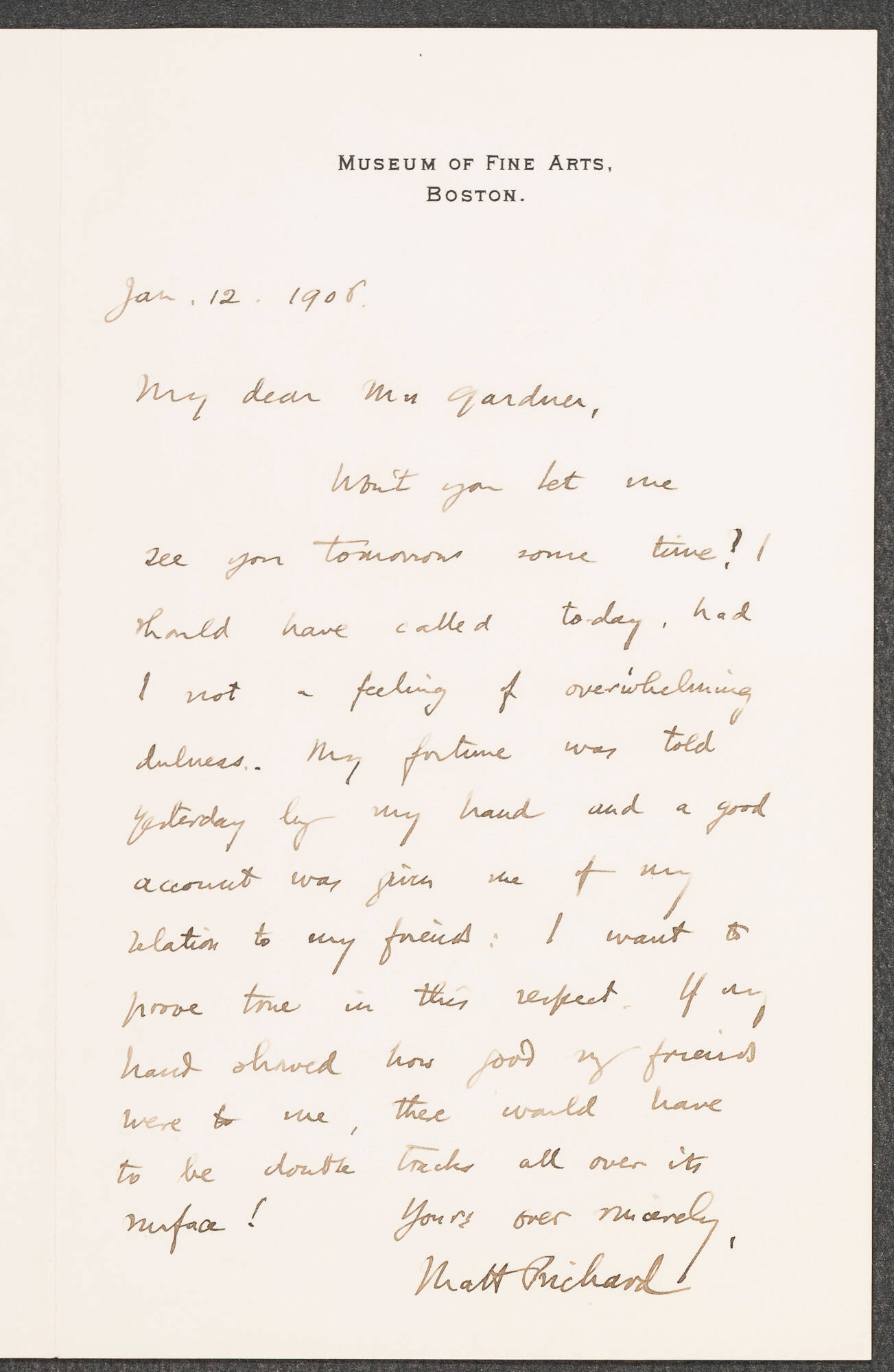 Stationery printed: Museum of Fine Arts, / Boston.