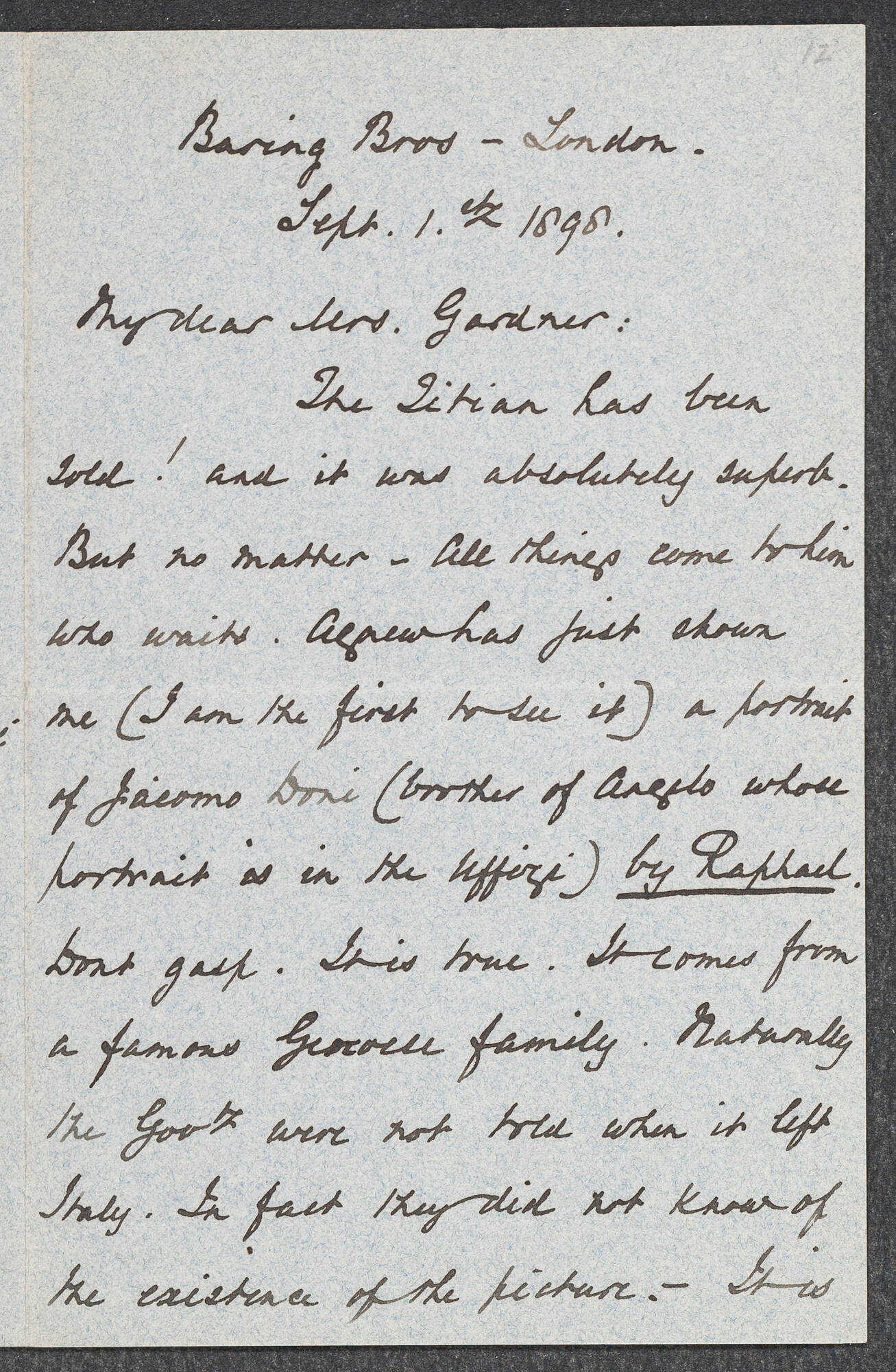 Letter to Isabella Stewart Gardner from Baring Bros., London