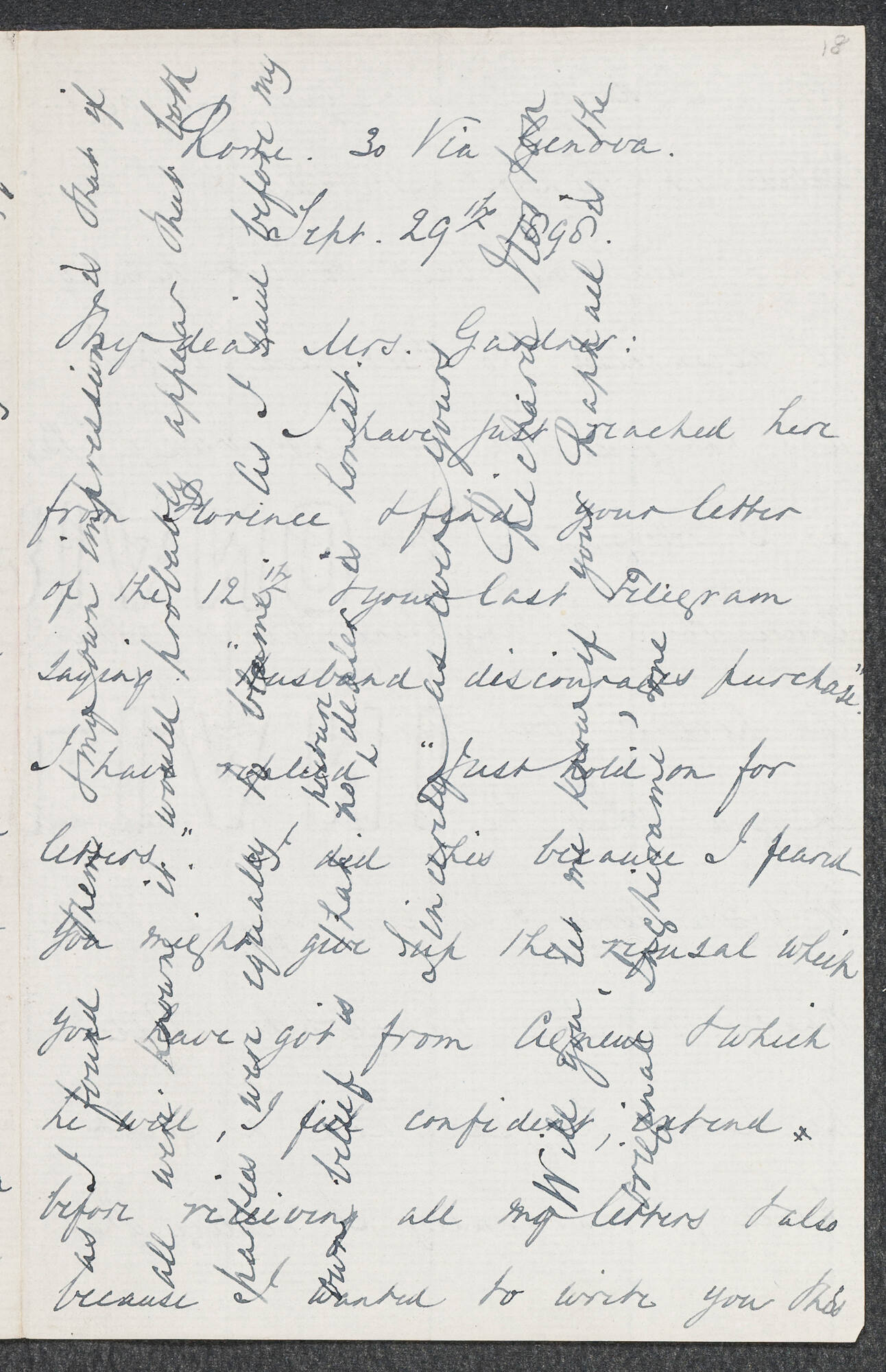 Letter to Isabella Stewart Gardner from 30 Via Genova, Rome