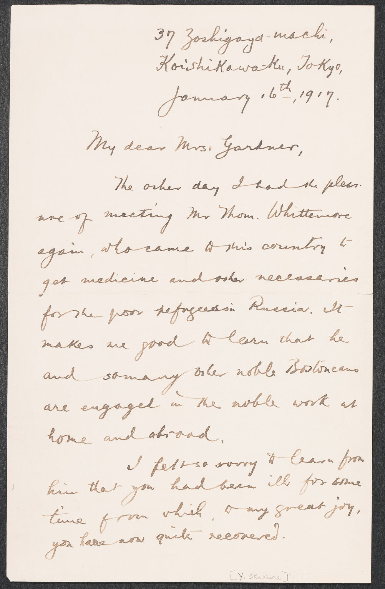 Letter to Isabella Stewart Gardner from 37 Zoshigaya-machi, Koishikawaku, Tokyo