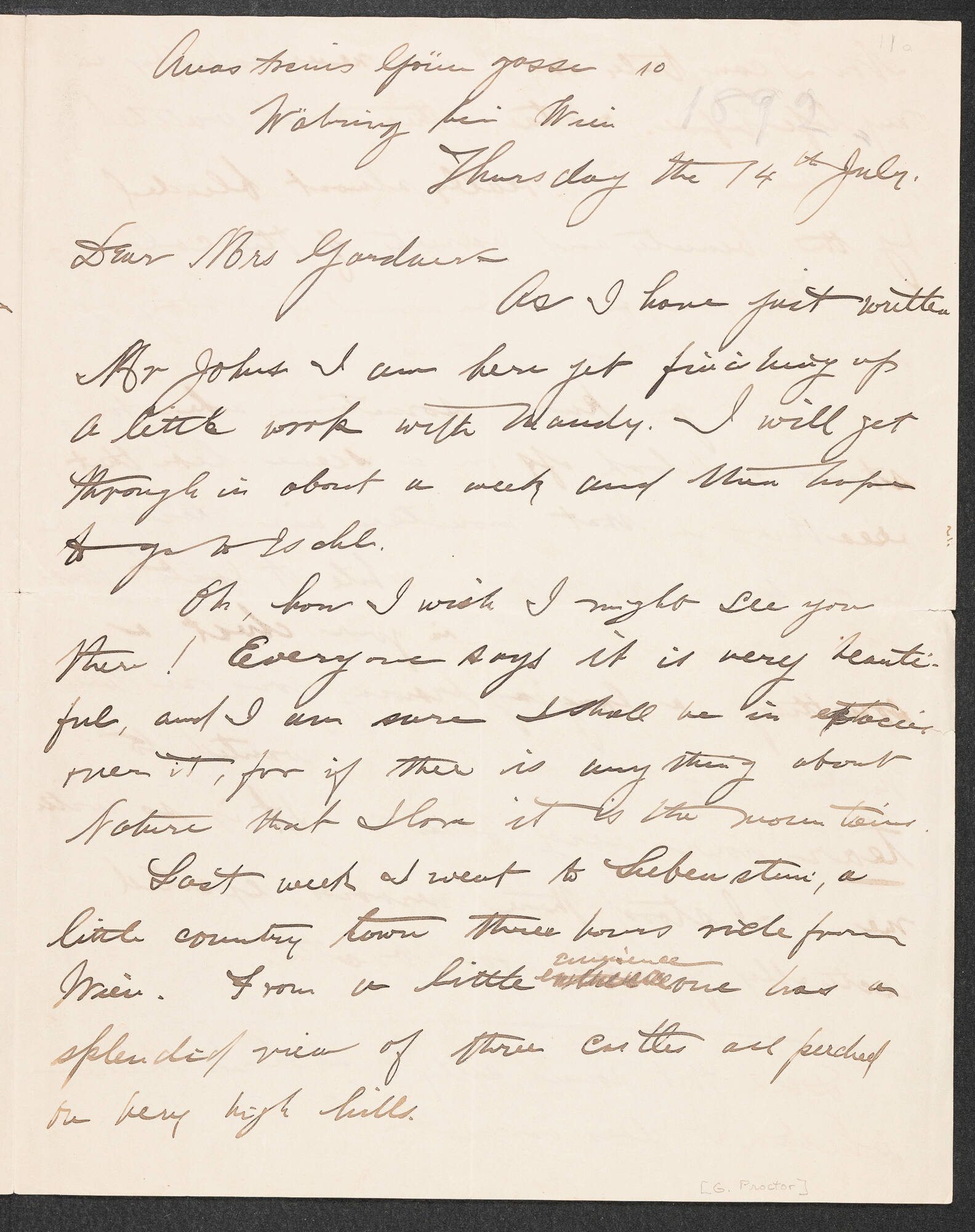 Letter to Isabella Stewart Gardner from Anastasius Grüngasse 10, Währing bei Wien, Vienna
