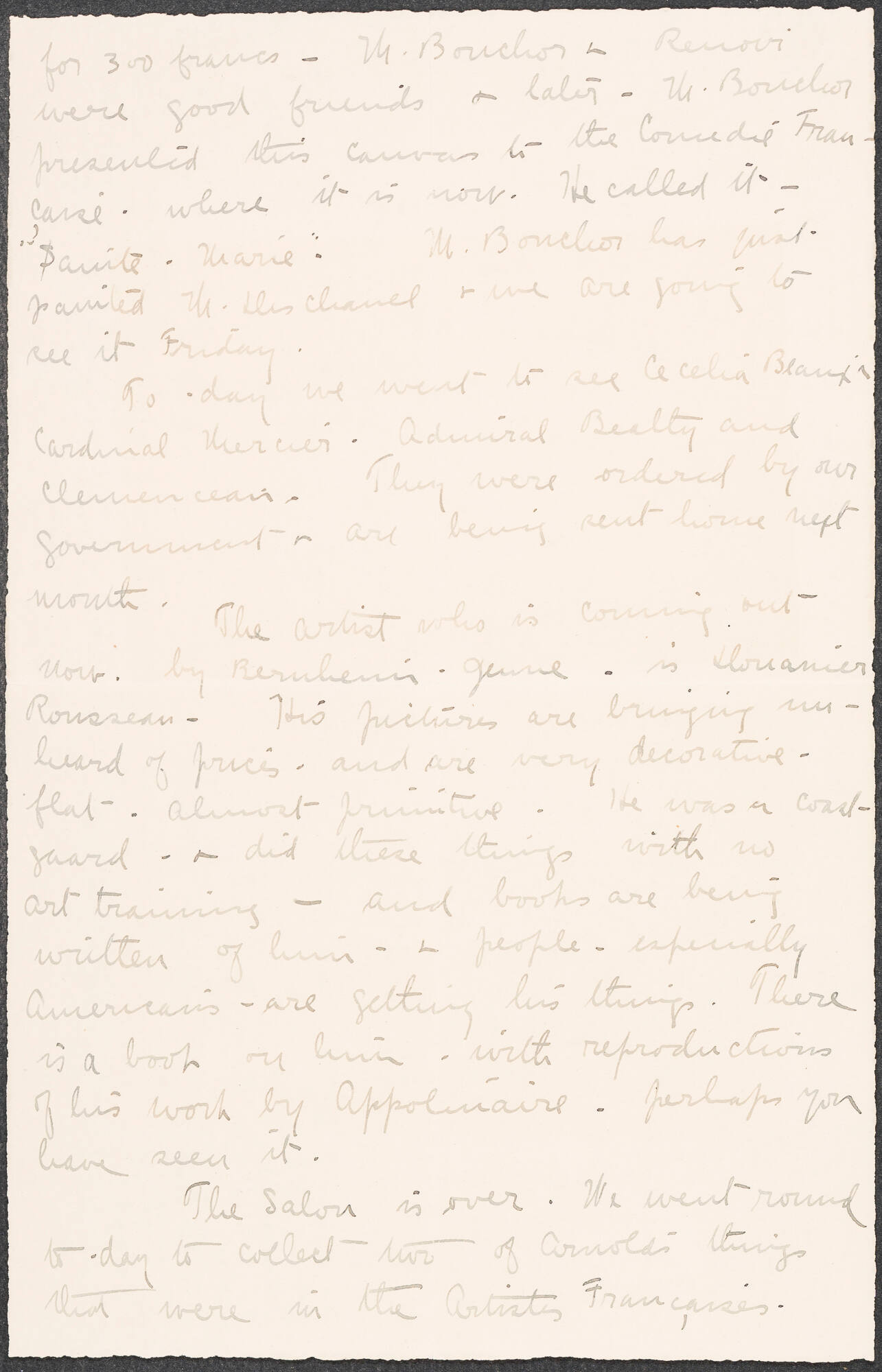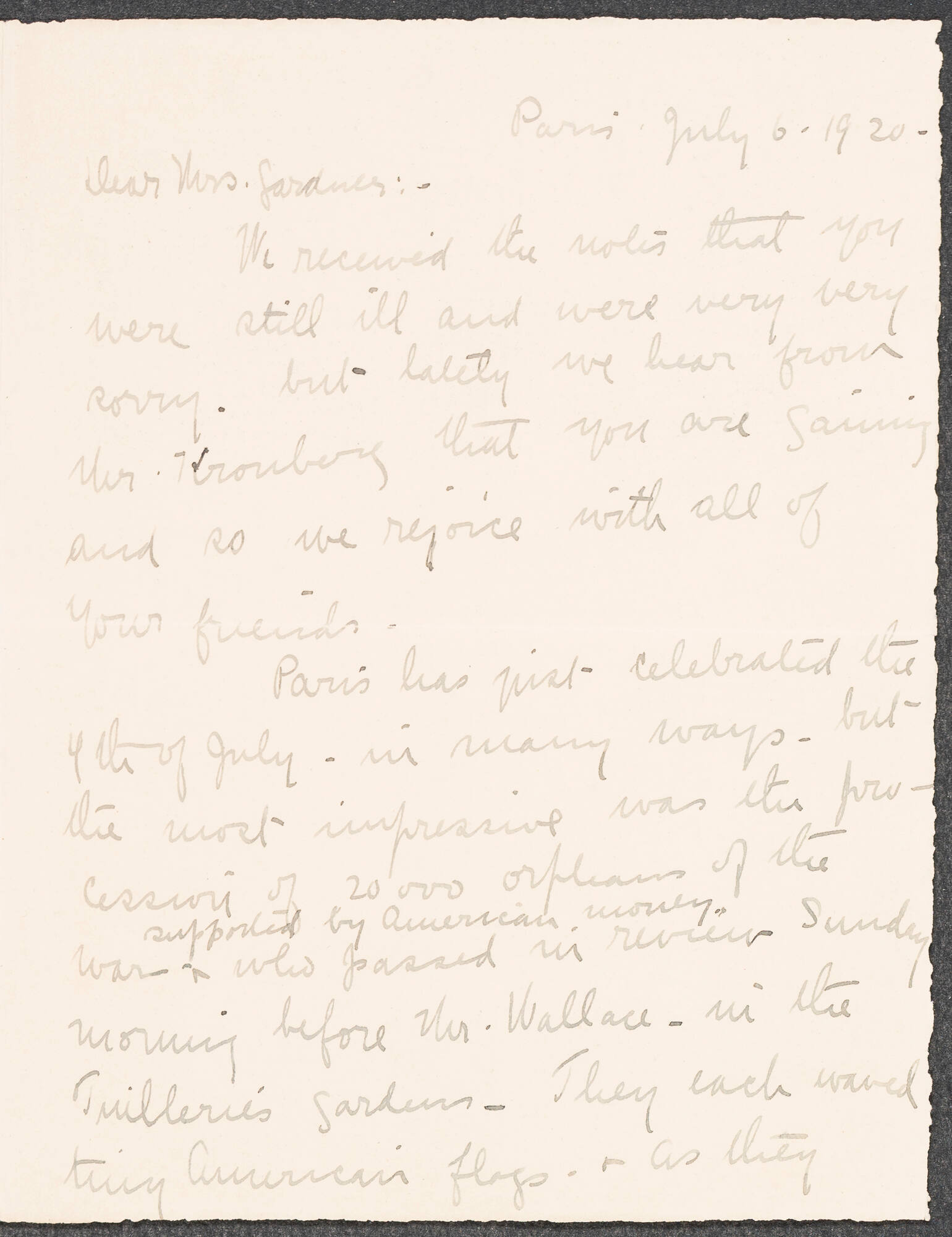Letter to Isabella Stewart Gardner from 68 rue d'Assas, Paris