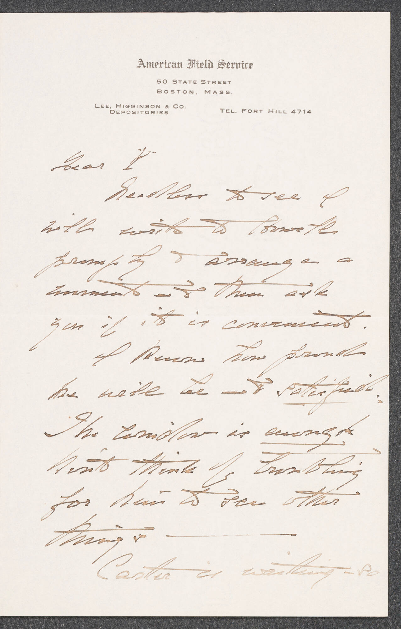 Stationery printed: American Field Service / 50 State Street / Boston, Mass. / ...