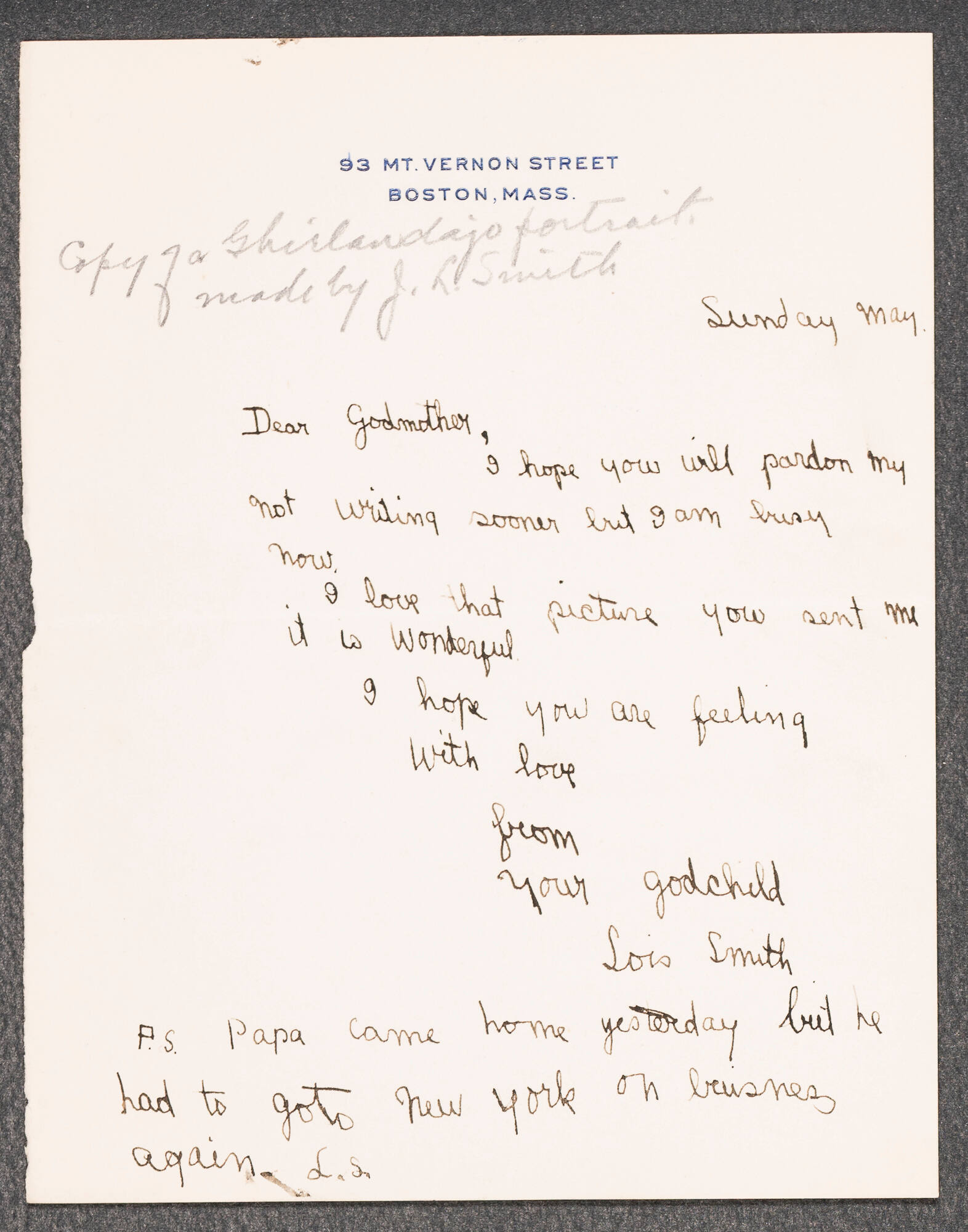 Lois L. Smith - Letter to Isabella Stewart Gardner from Boston, early 20th century