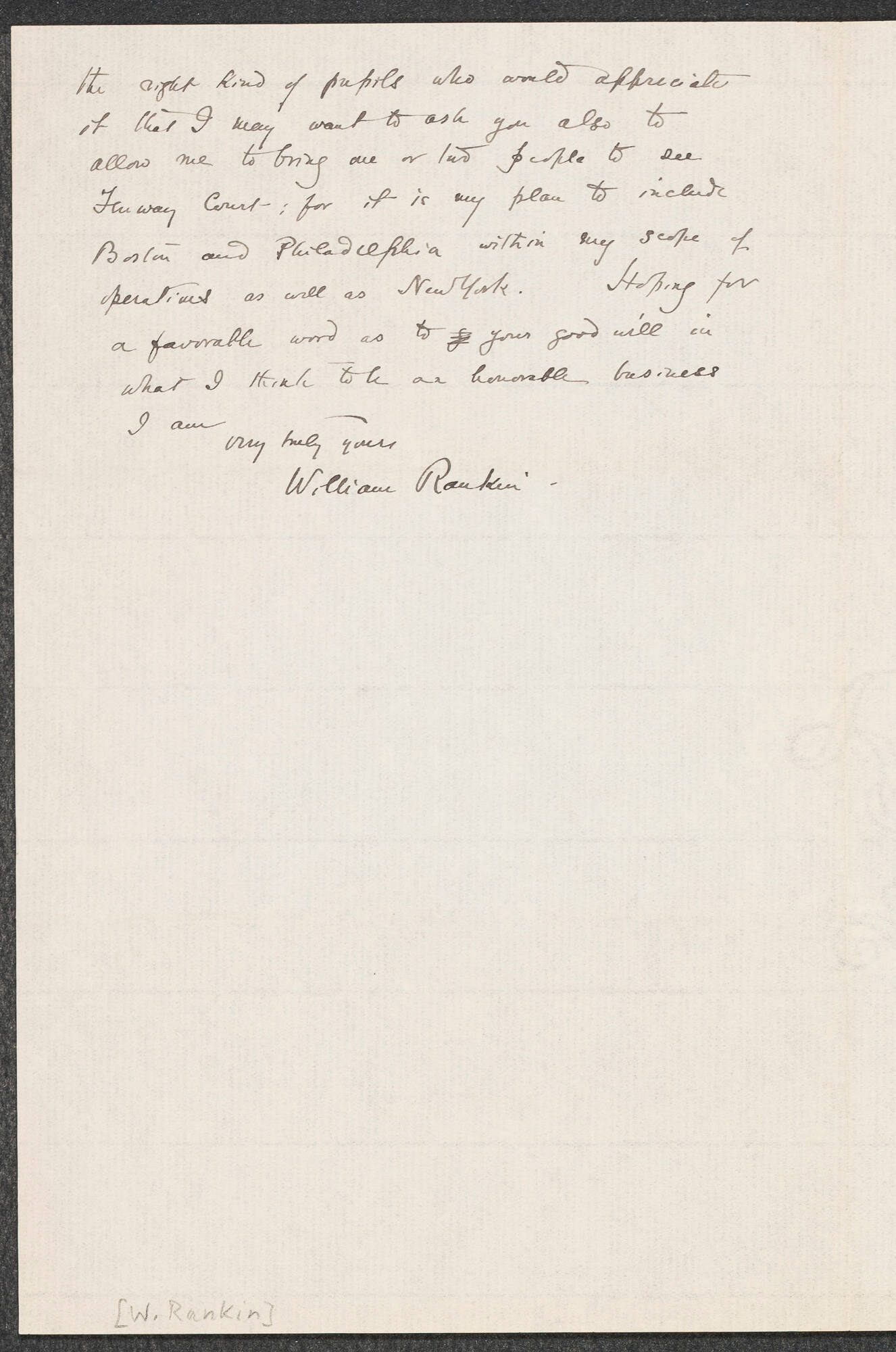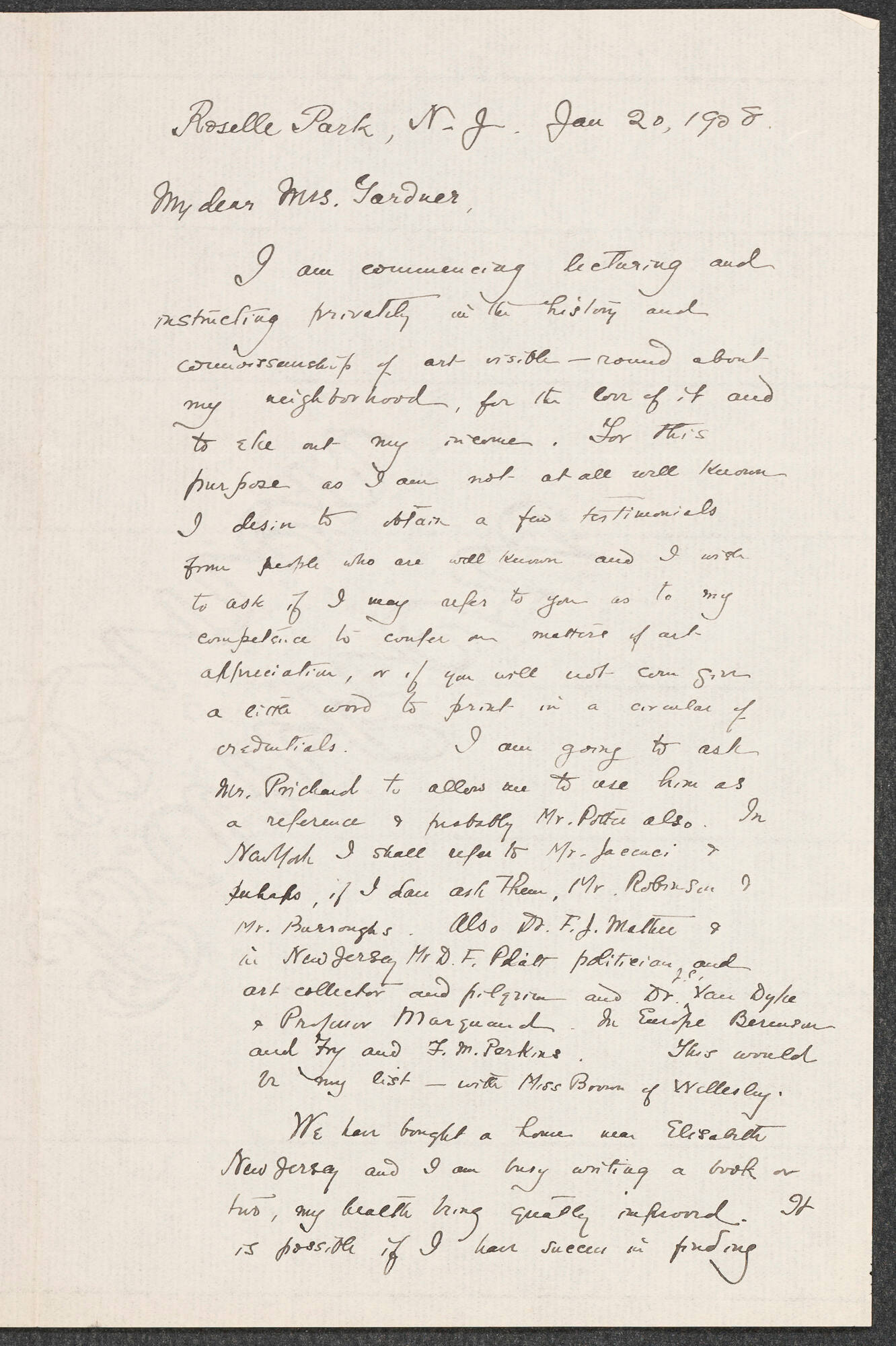 Letter to Isabella Stewart Gardner from Roselle Park, New Jersey