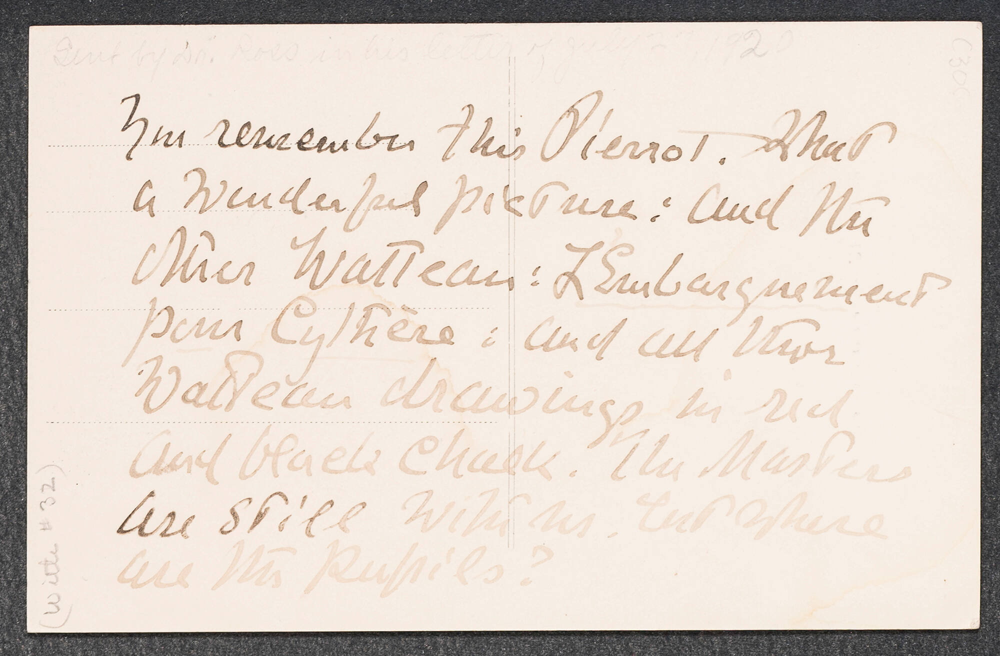 Inscribed in pencil (verso of postcard, lower left corner): (with #32)