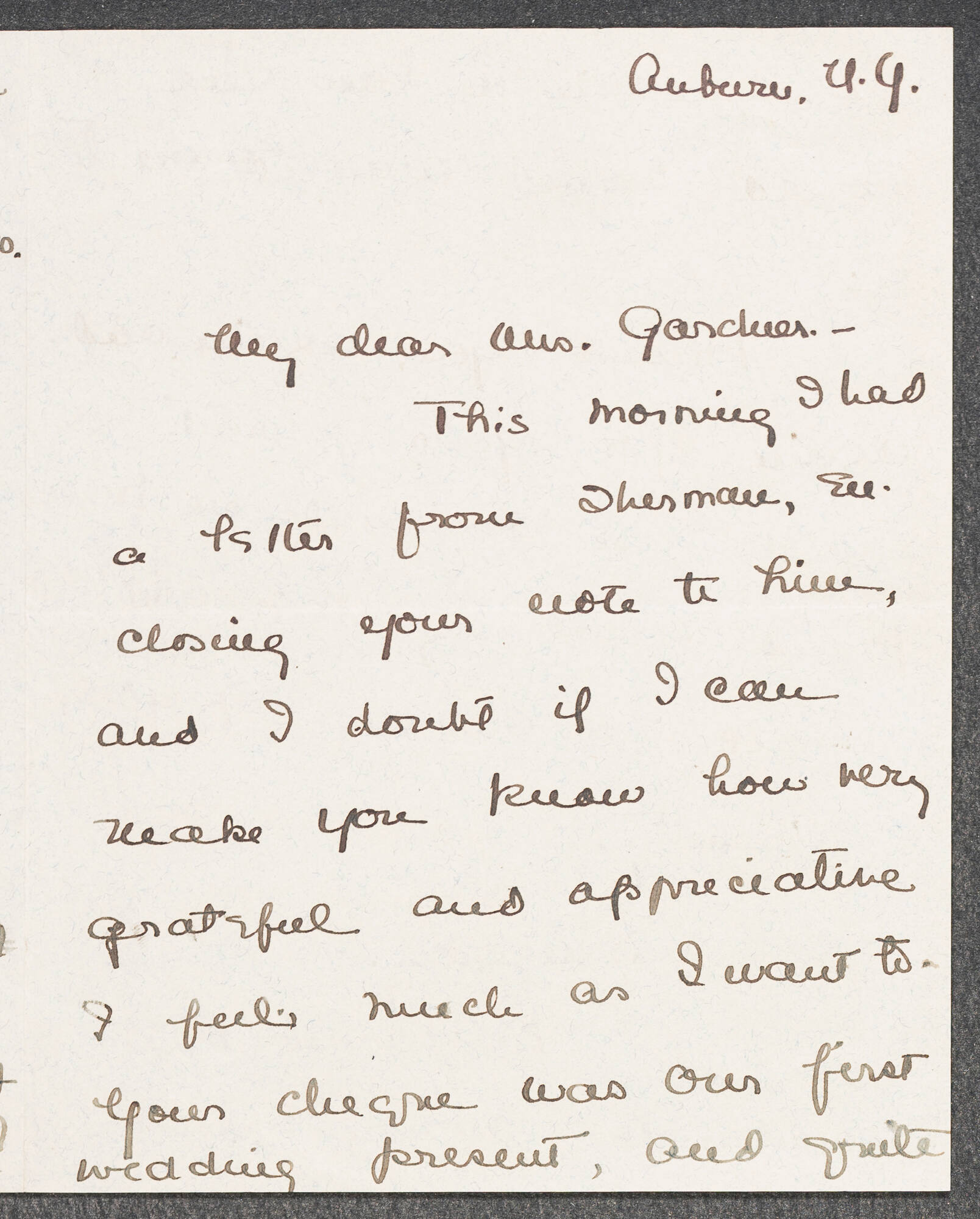 Letter to Isabella Stewart Gardner from Auburn, New York