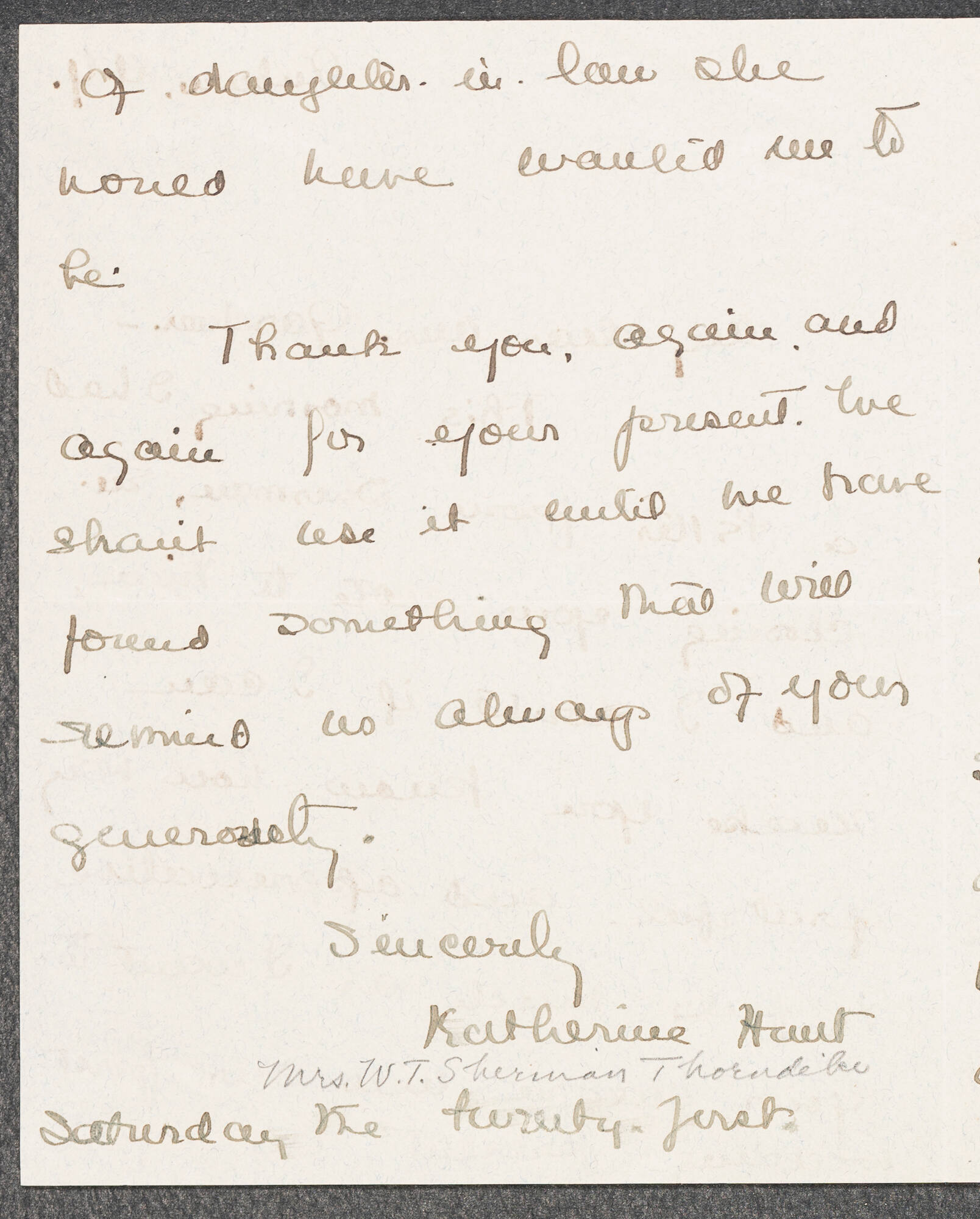 Inscribed in pencil (lower): Mrs. W.T. Sherman Thornike