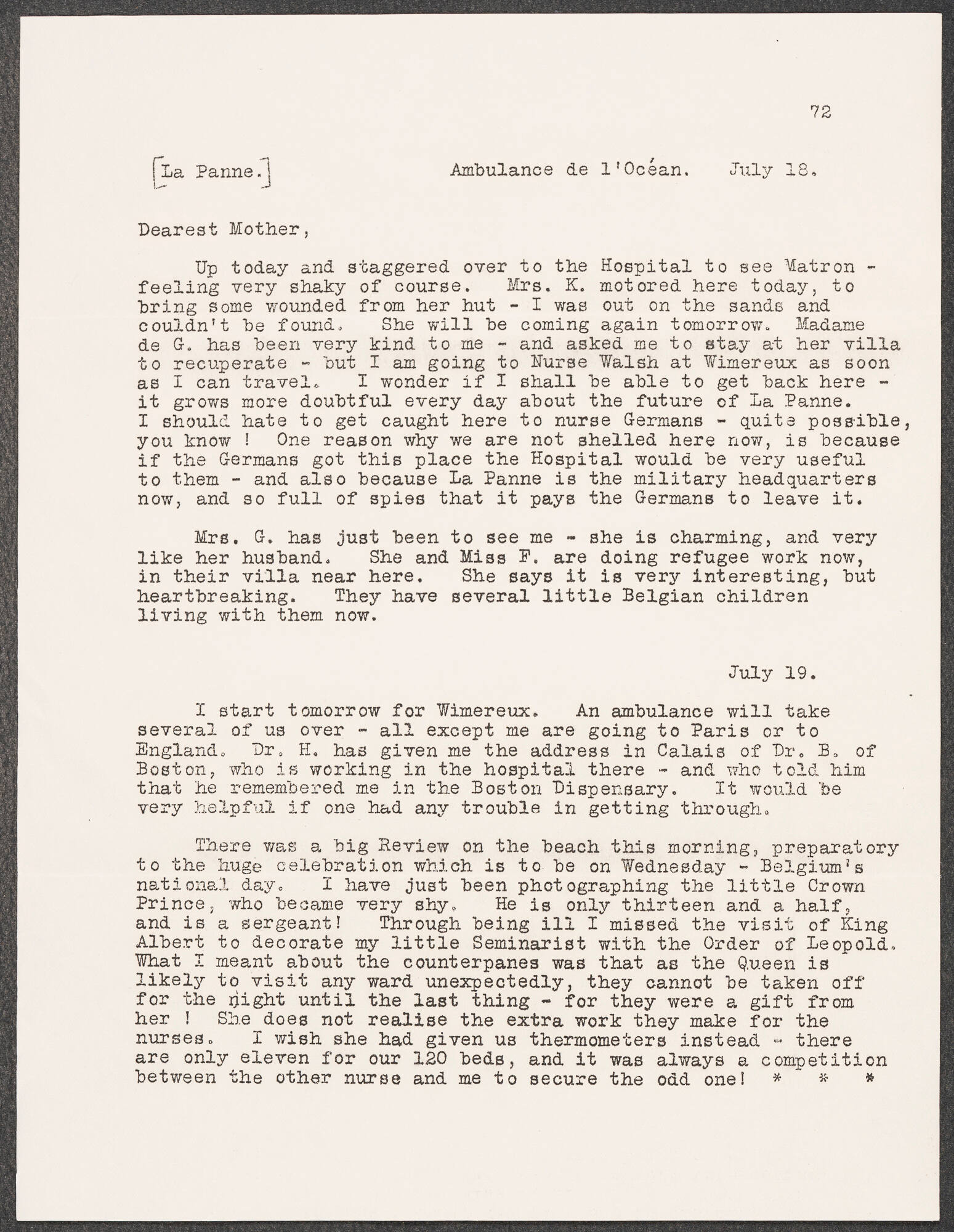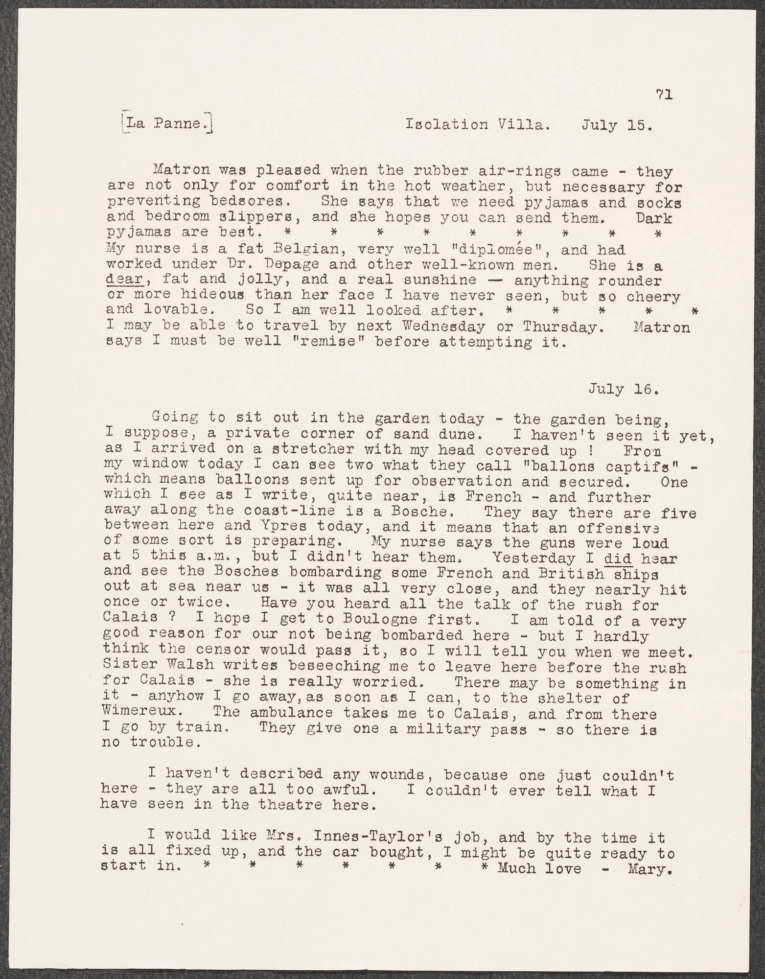 Annotated Manuscript for In the Soldier's Service: War Experiences of Mary Dexter, England, Belgium, France