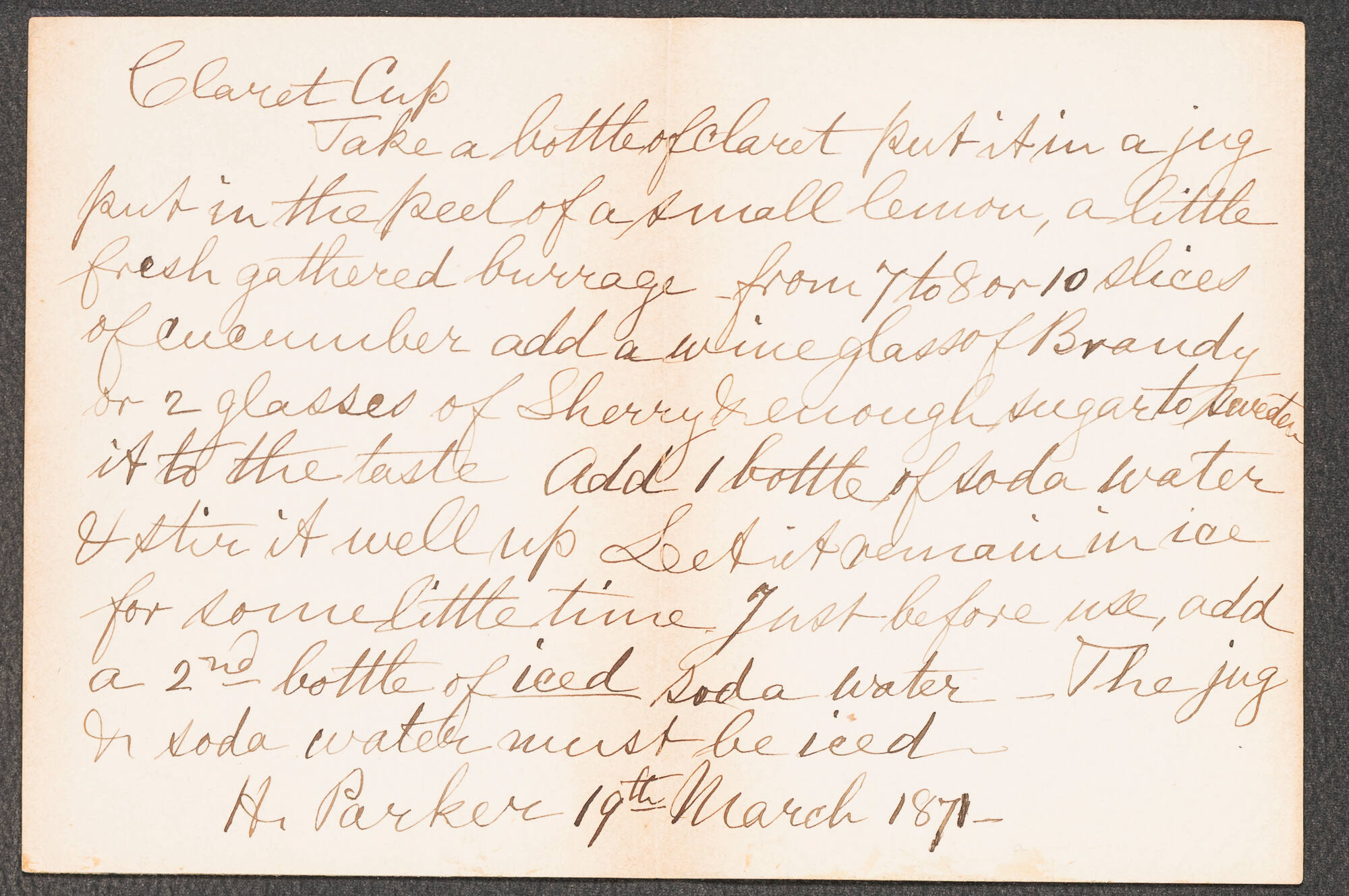 Recipe for Claret Cup for John Lowell Gardner, Jr.