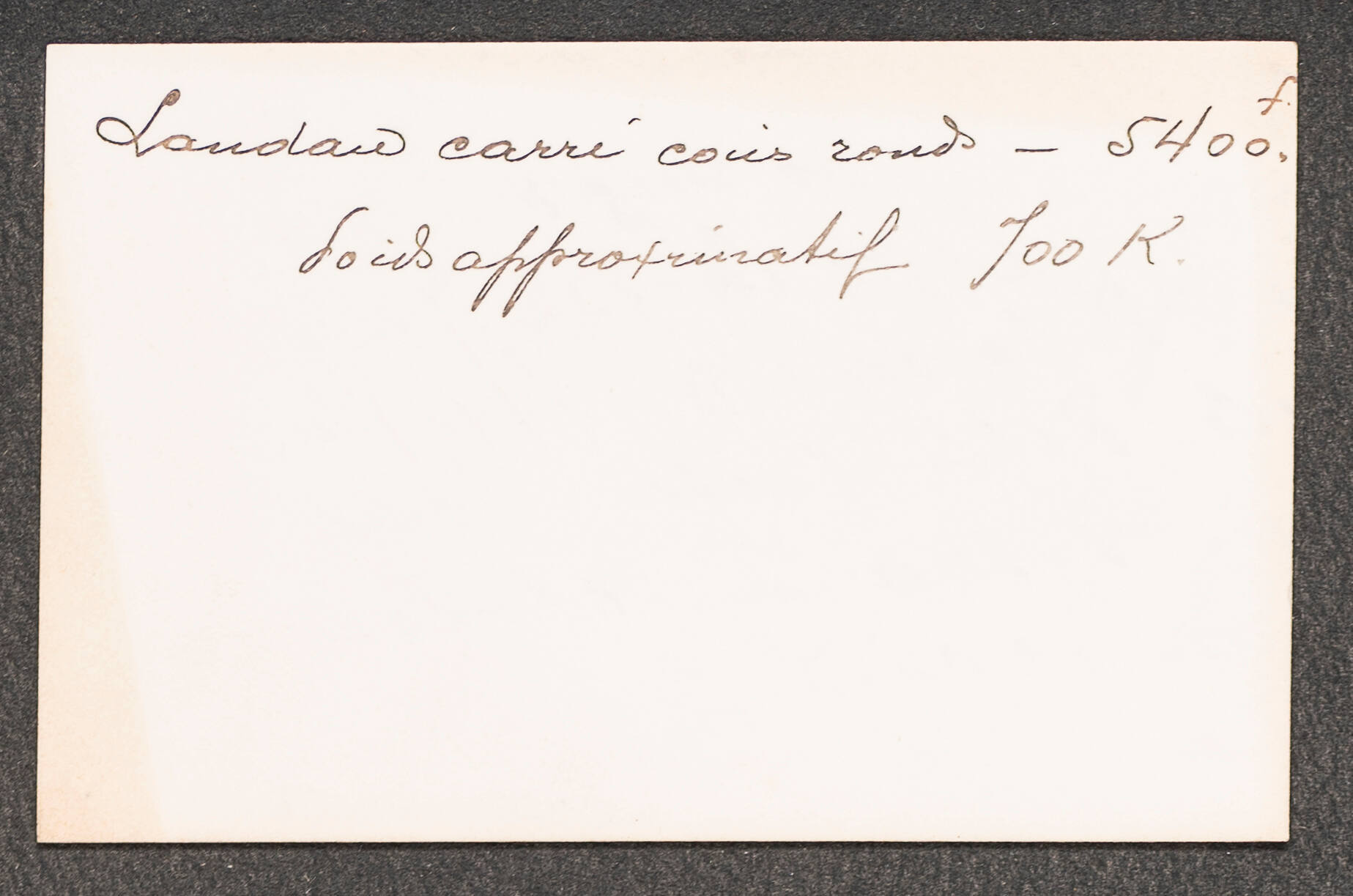 Inscribed in ink (upper): Landau carri cous ronds - 5400. / f / Lous [?] approximatif 700 k