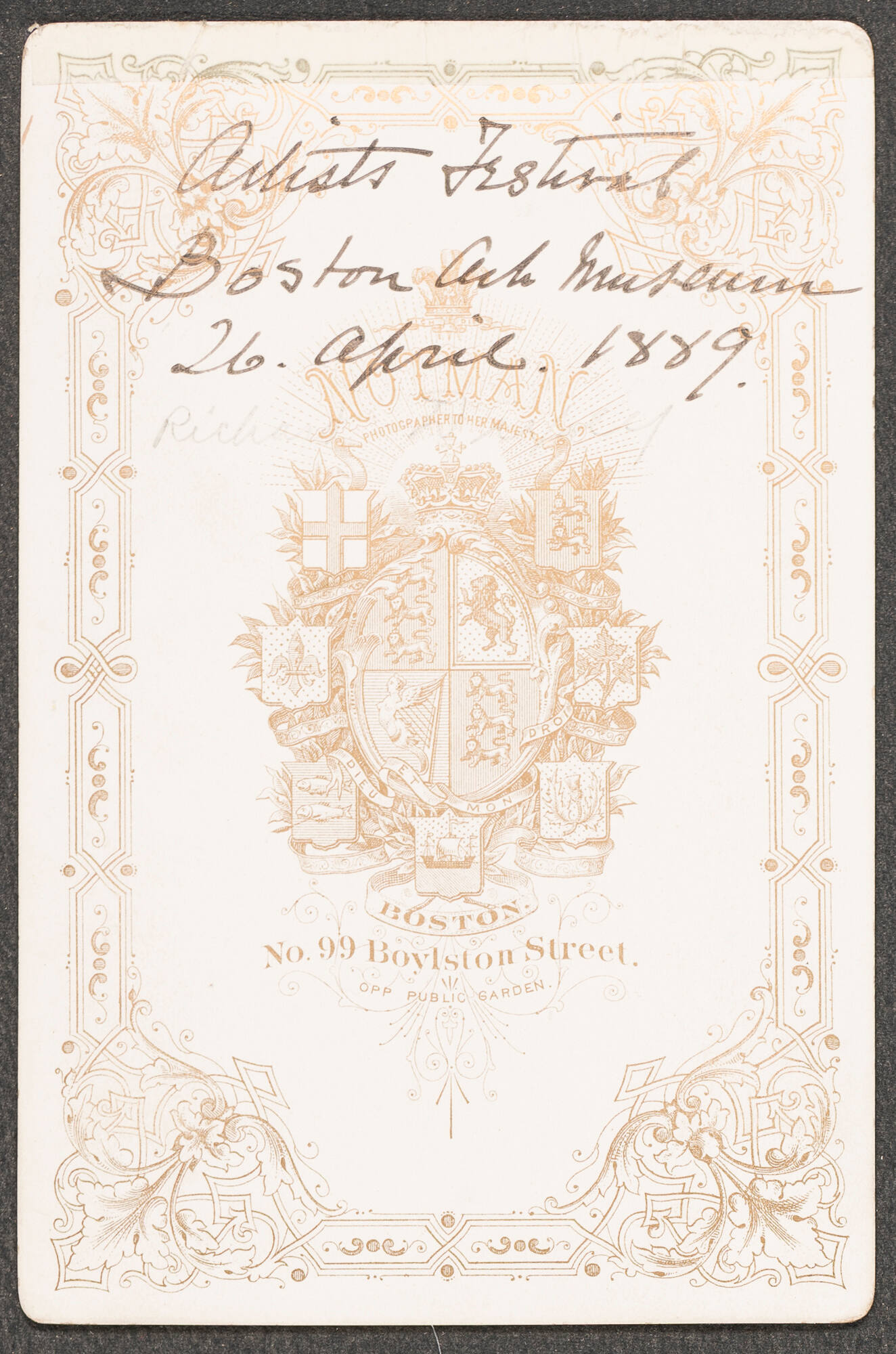 Inscribed in ink (upper): Artists Festival / Boston Art Museum / 26. April. 1889.