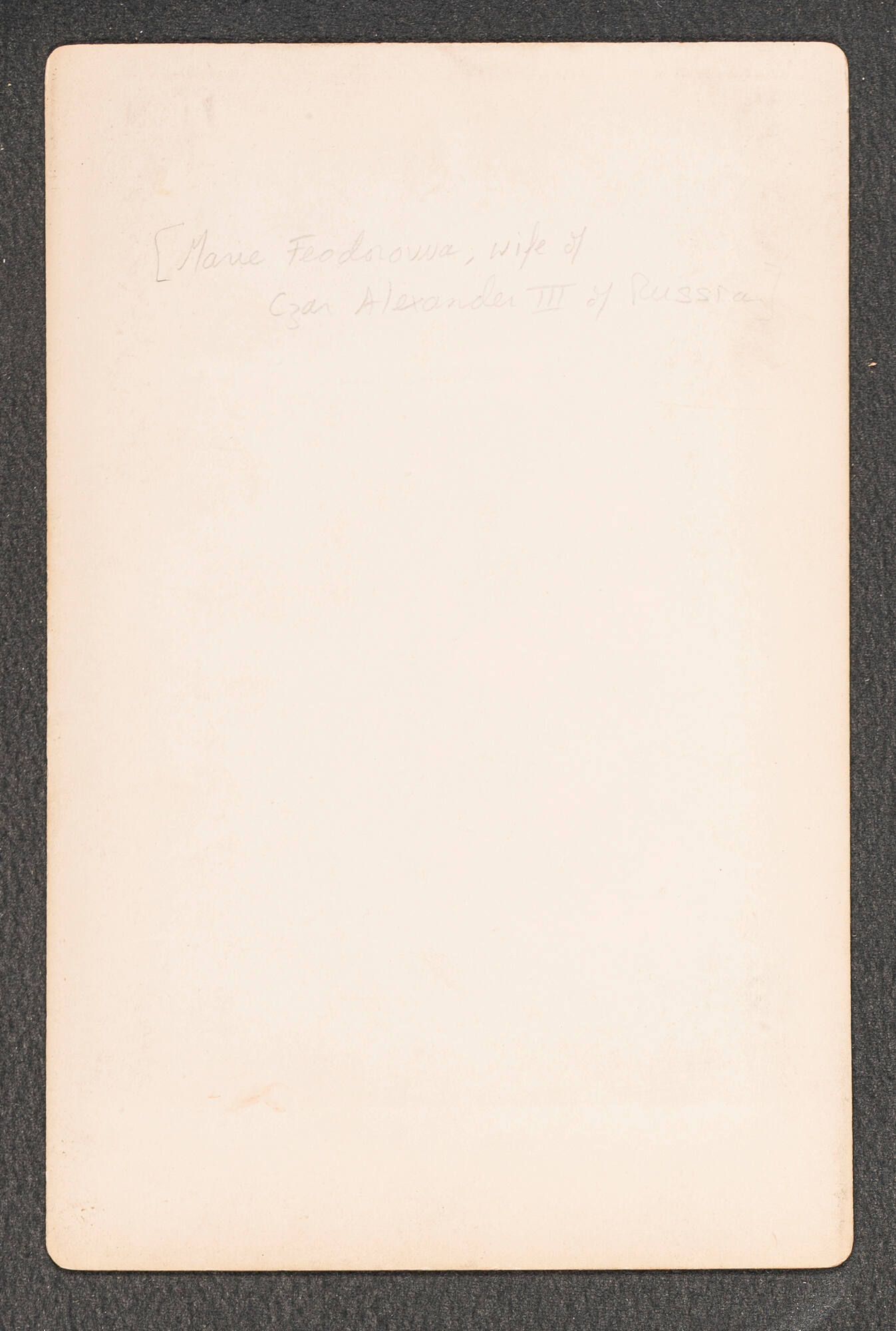Inscribed in pencil (verso): [Marie Feodorovna, wife of / Czar Alexander III of Russia]