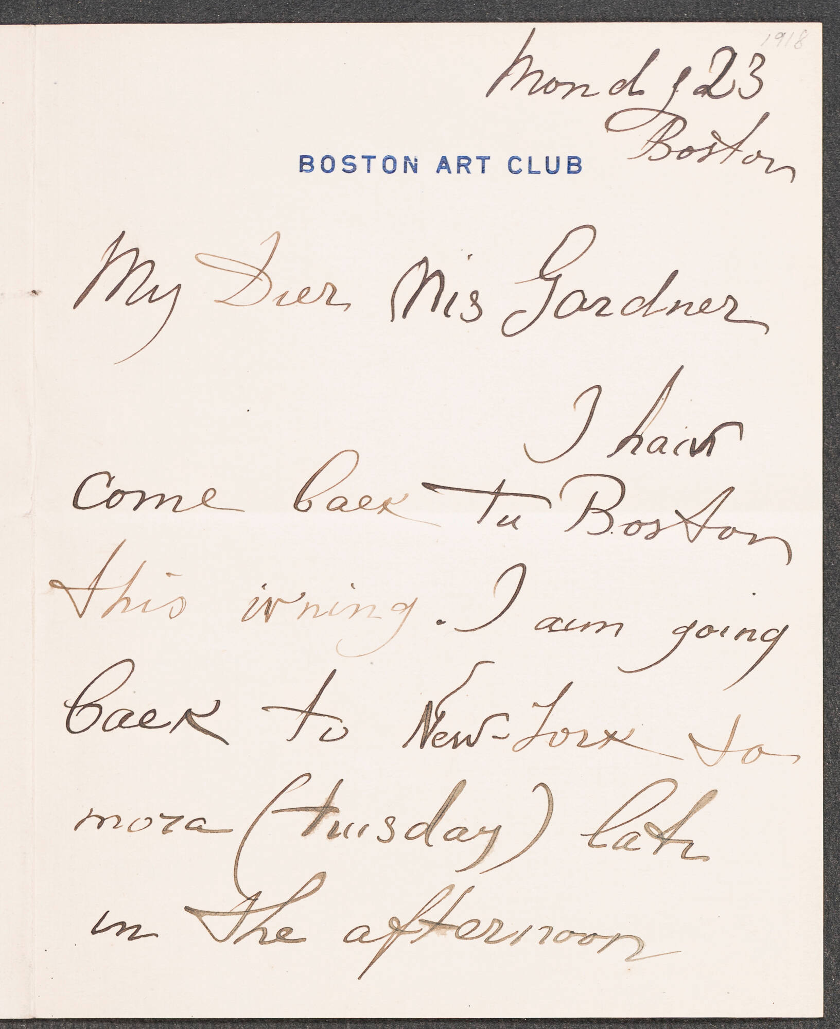 Letter to Isabella Stewart Gardner from Boston Art Club, Boston