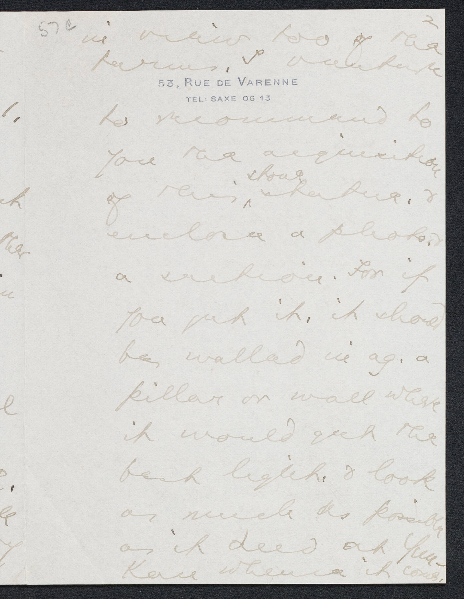 Letter to Isabella Stewart Gardner from 53 Rue de Varenne, Paris