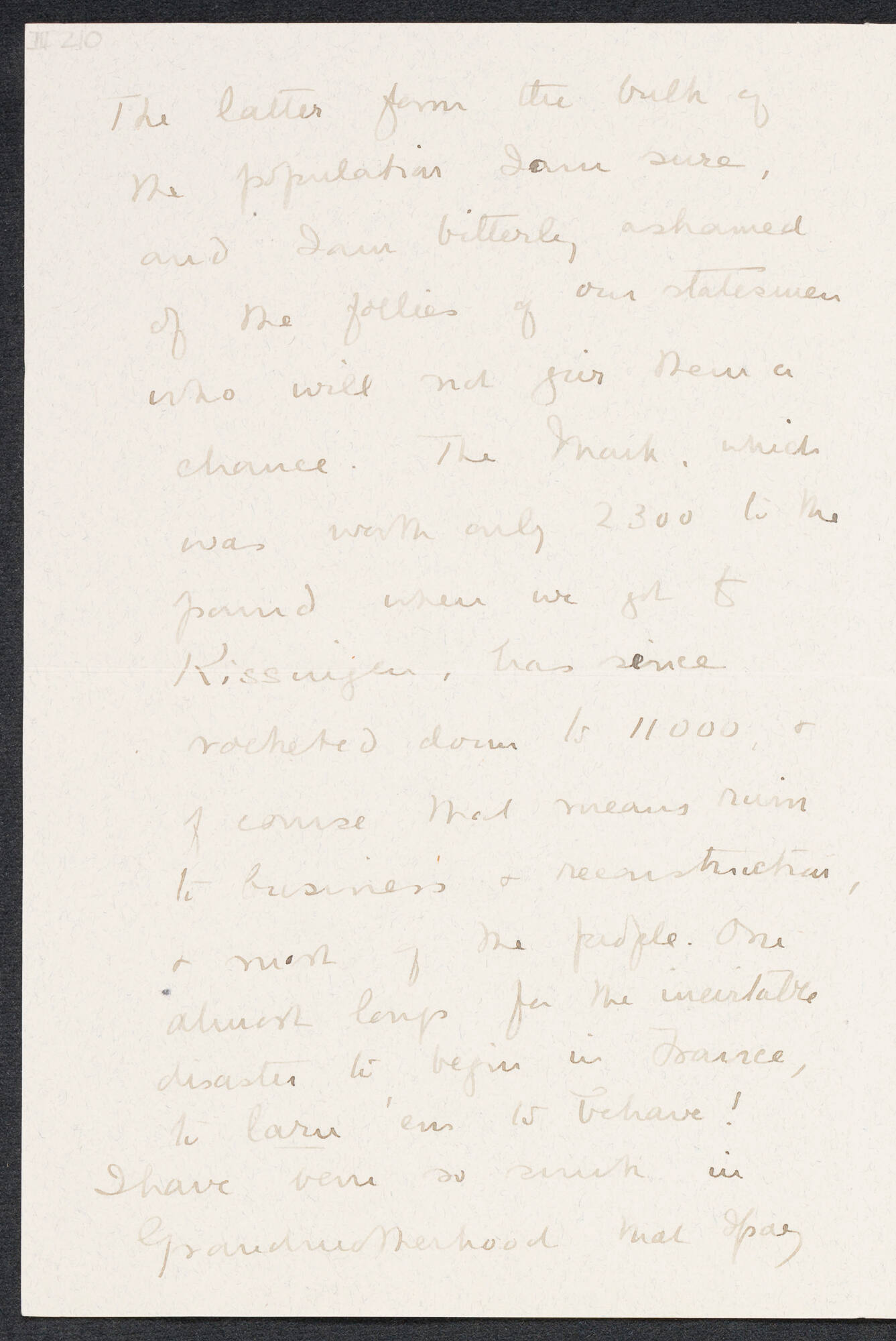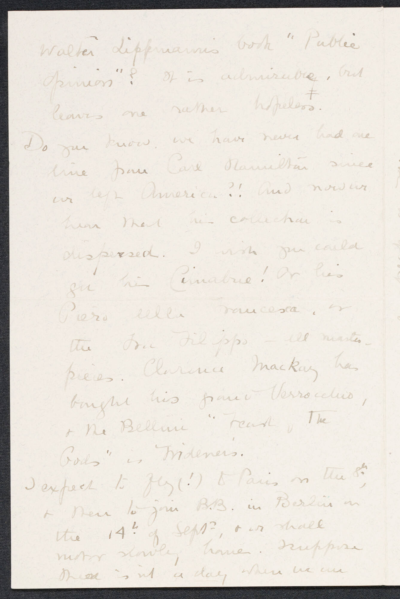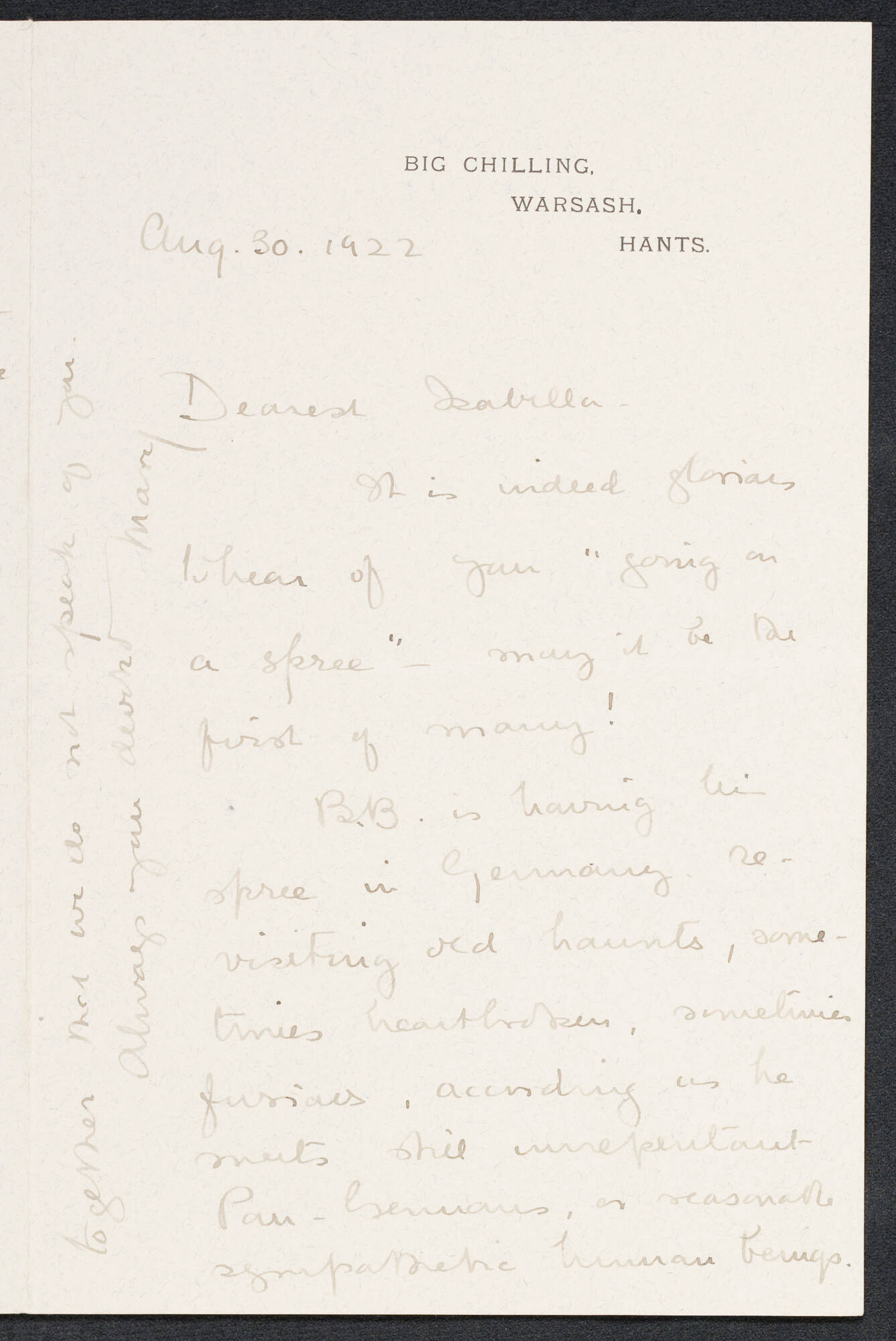 Mary Berenson - Letter to Isabella Stewart Gardner from Warsash, England, 30 August 1922