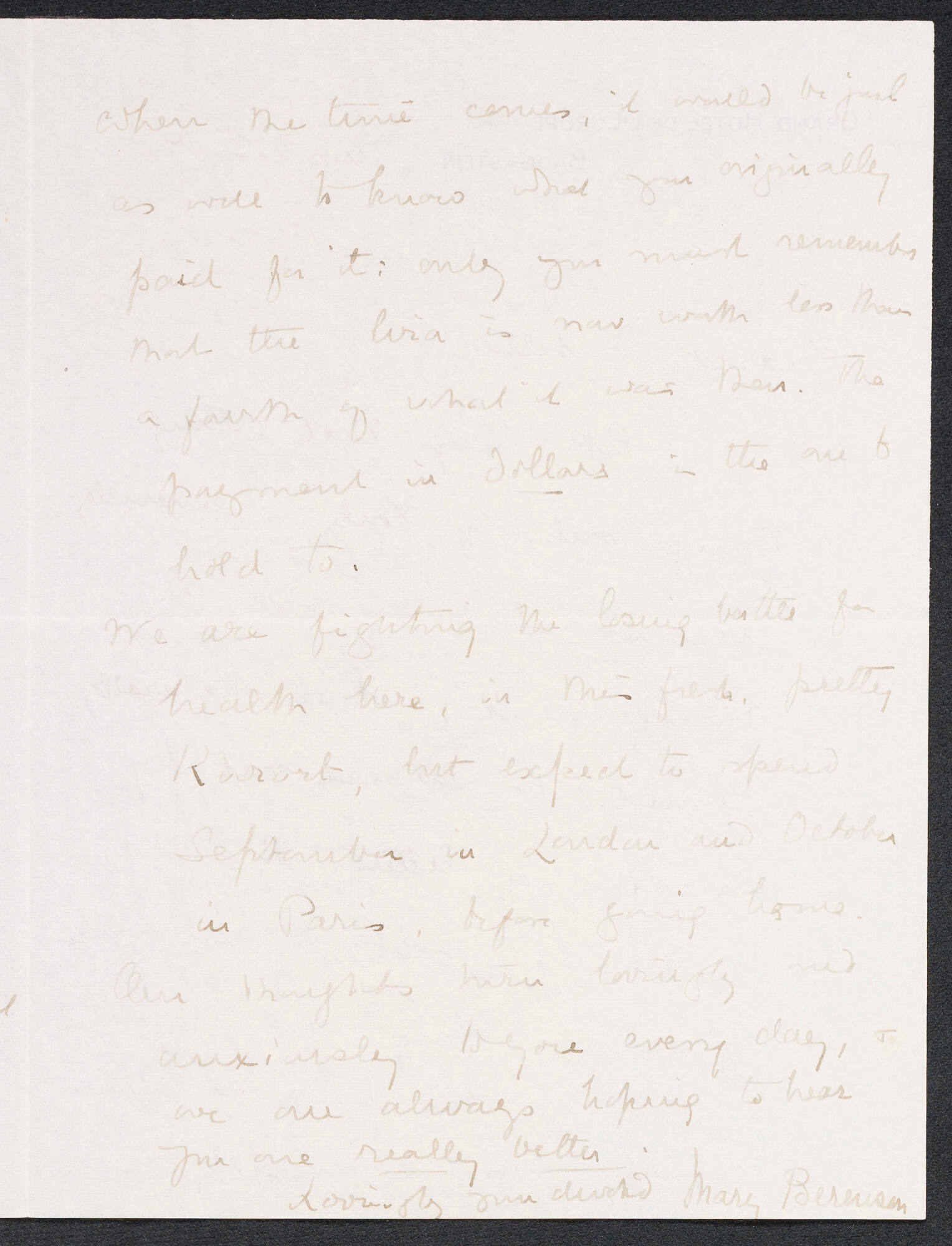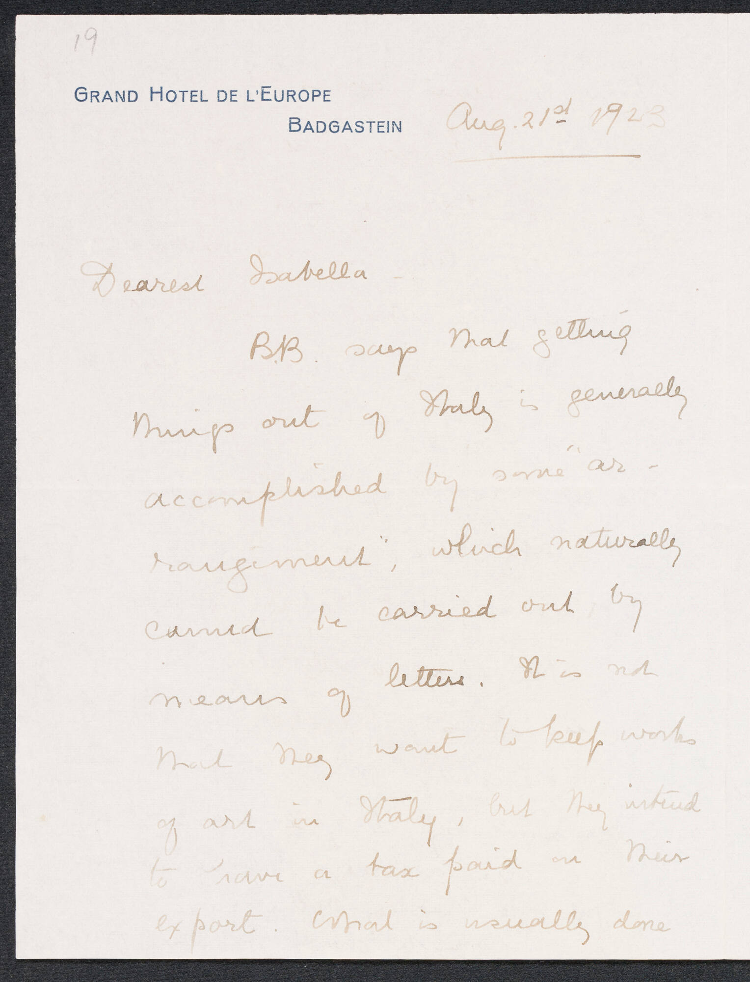 Letter to Isabella Stewart Gardner from Grand Hotel de L'Europe, Badgastein, Austria