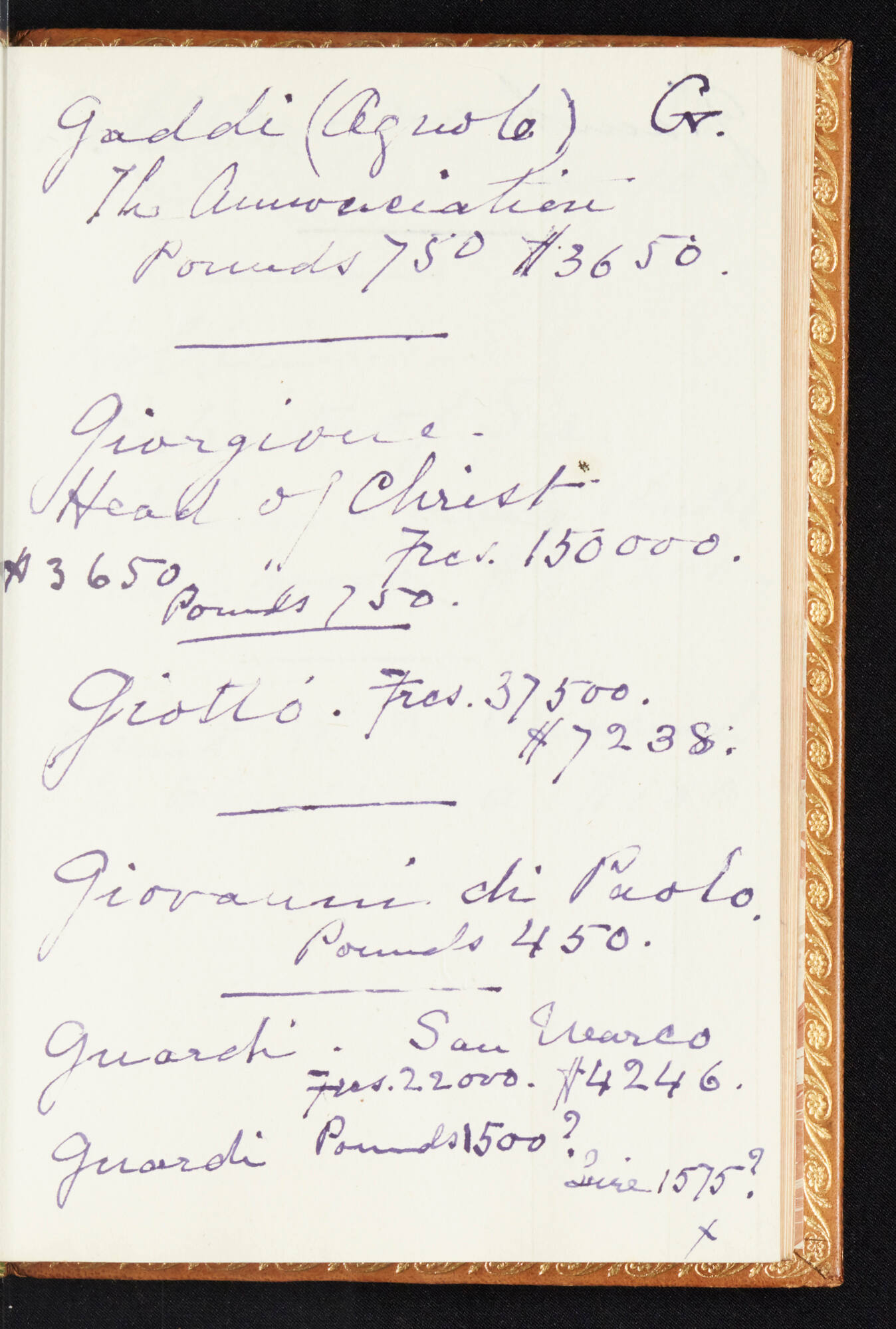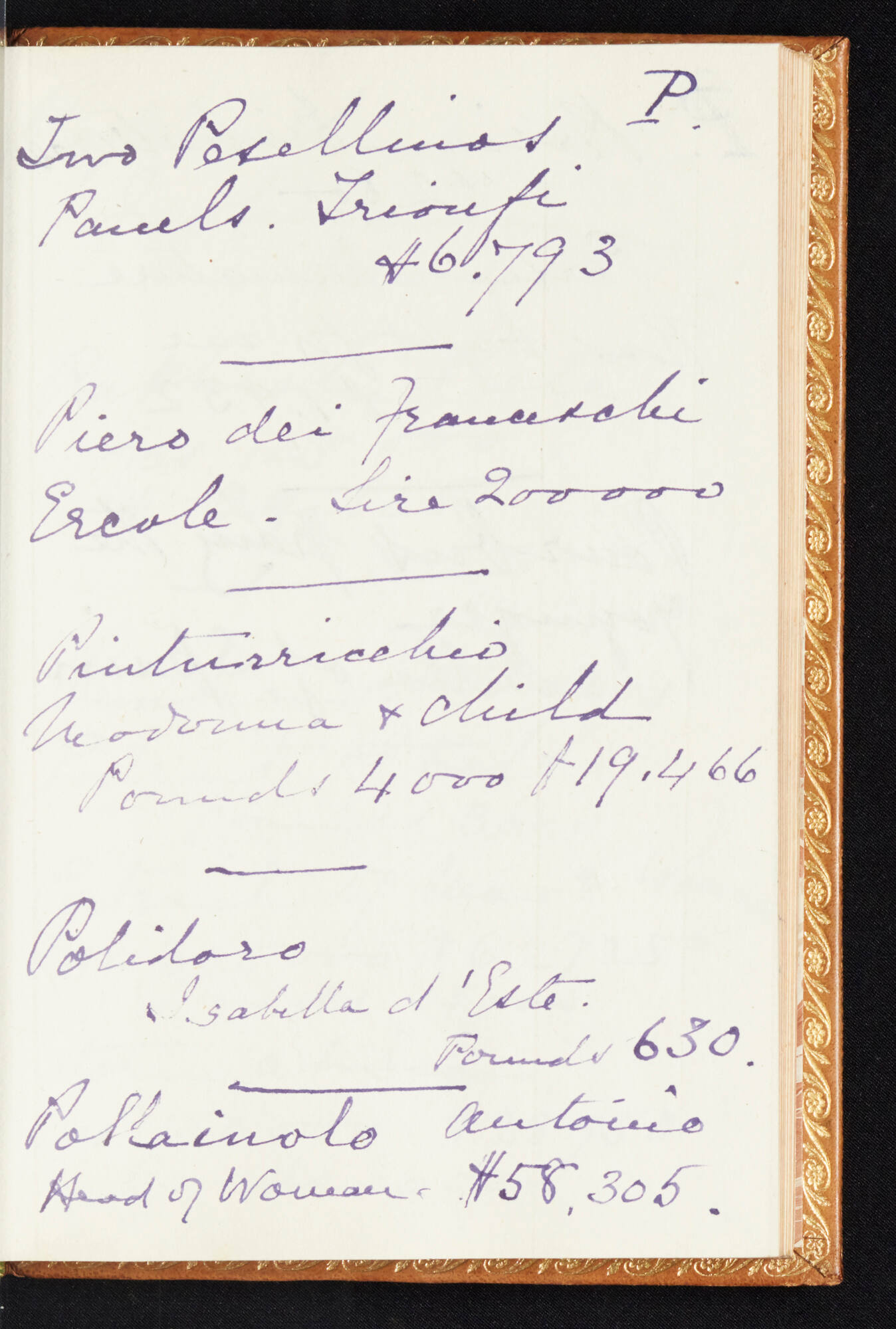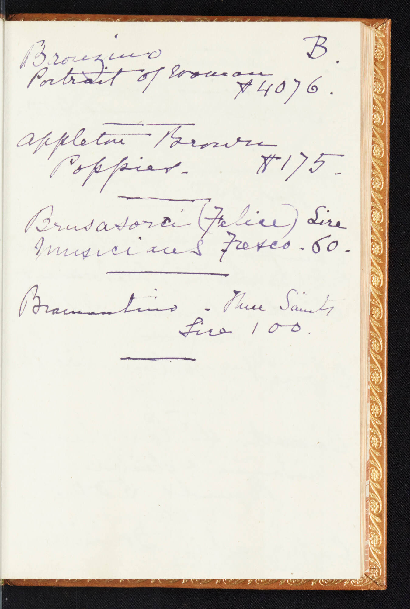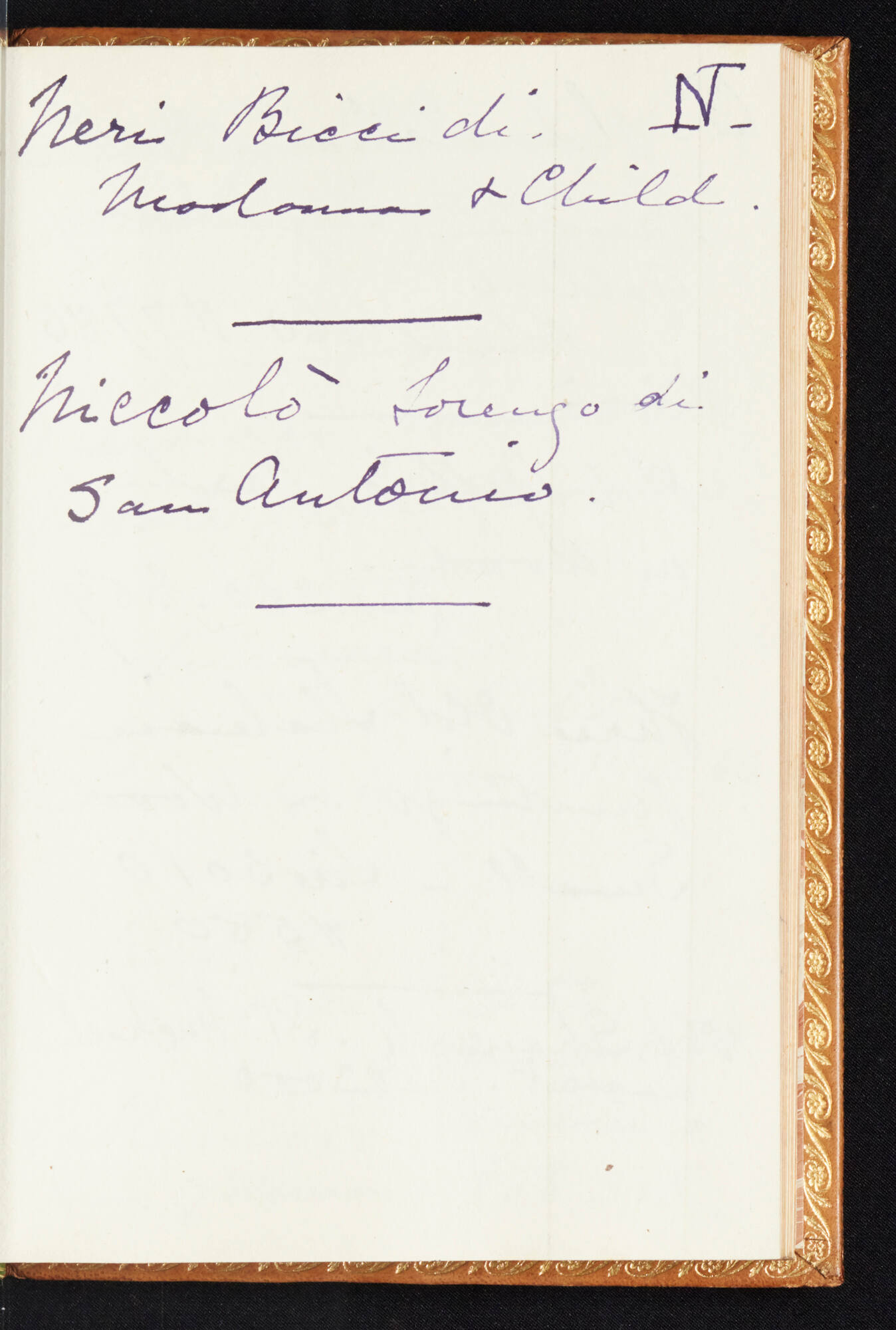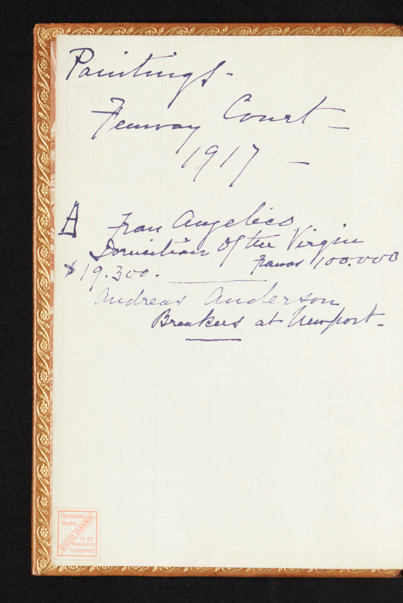 Stamped in red ink (on label on first page, lower left corner): Parchment / Works - GIULIO GIANNINI / 19-20 / PIAZZA PITTI / FLORENCE