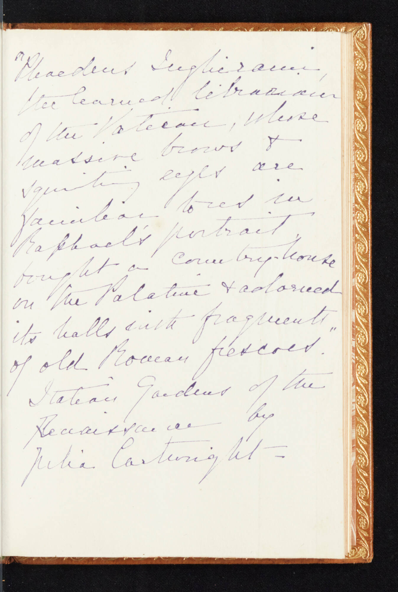 Handwritten ink and graphite on paper, in a tooled and gilded leather binding with enclosed gelatin silver print