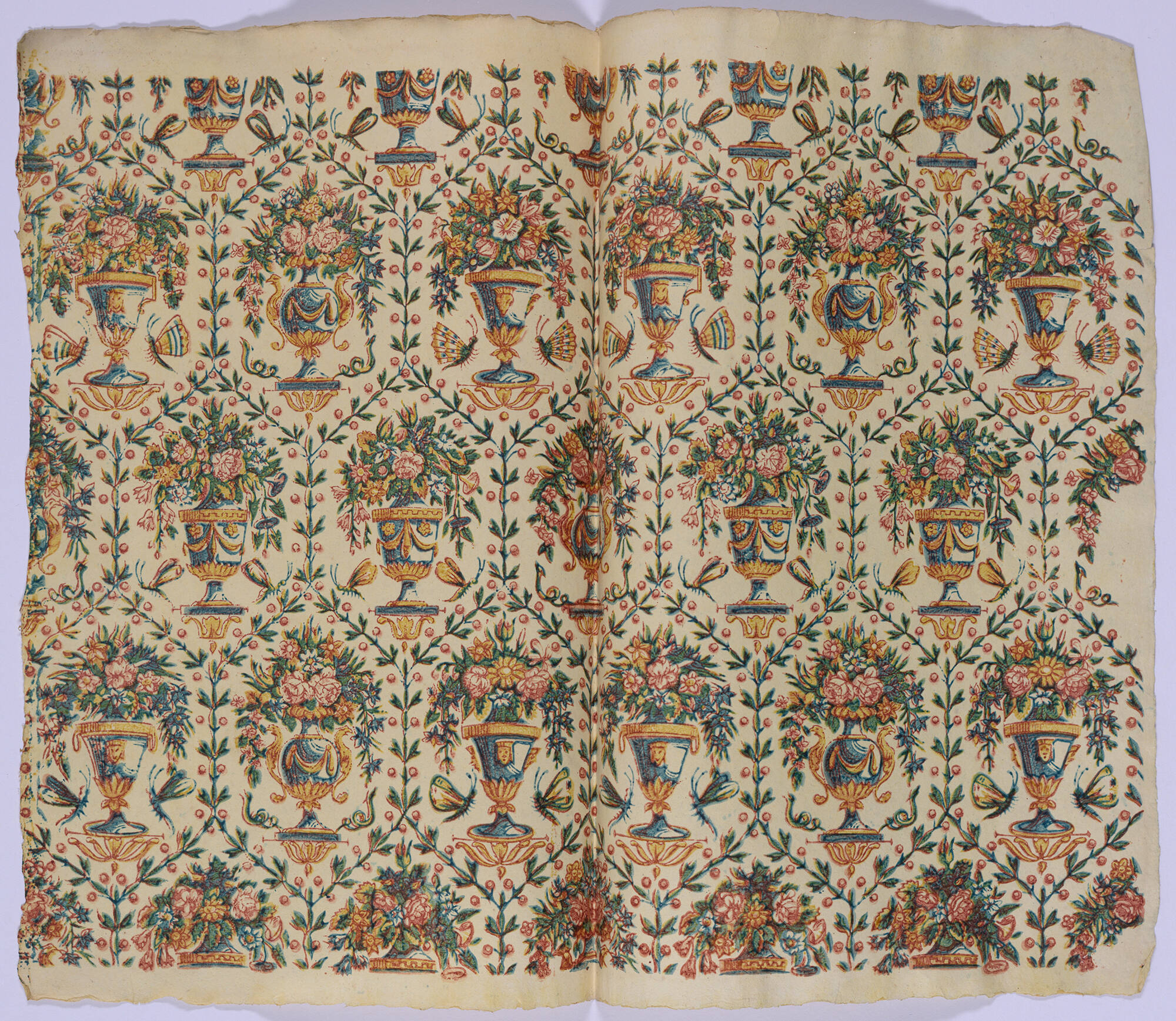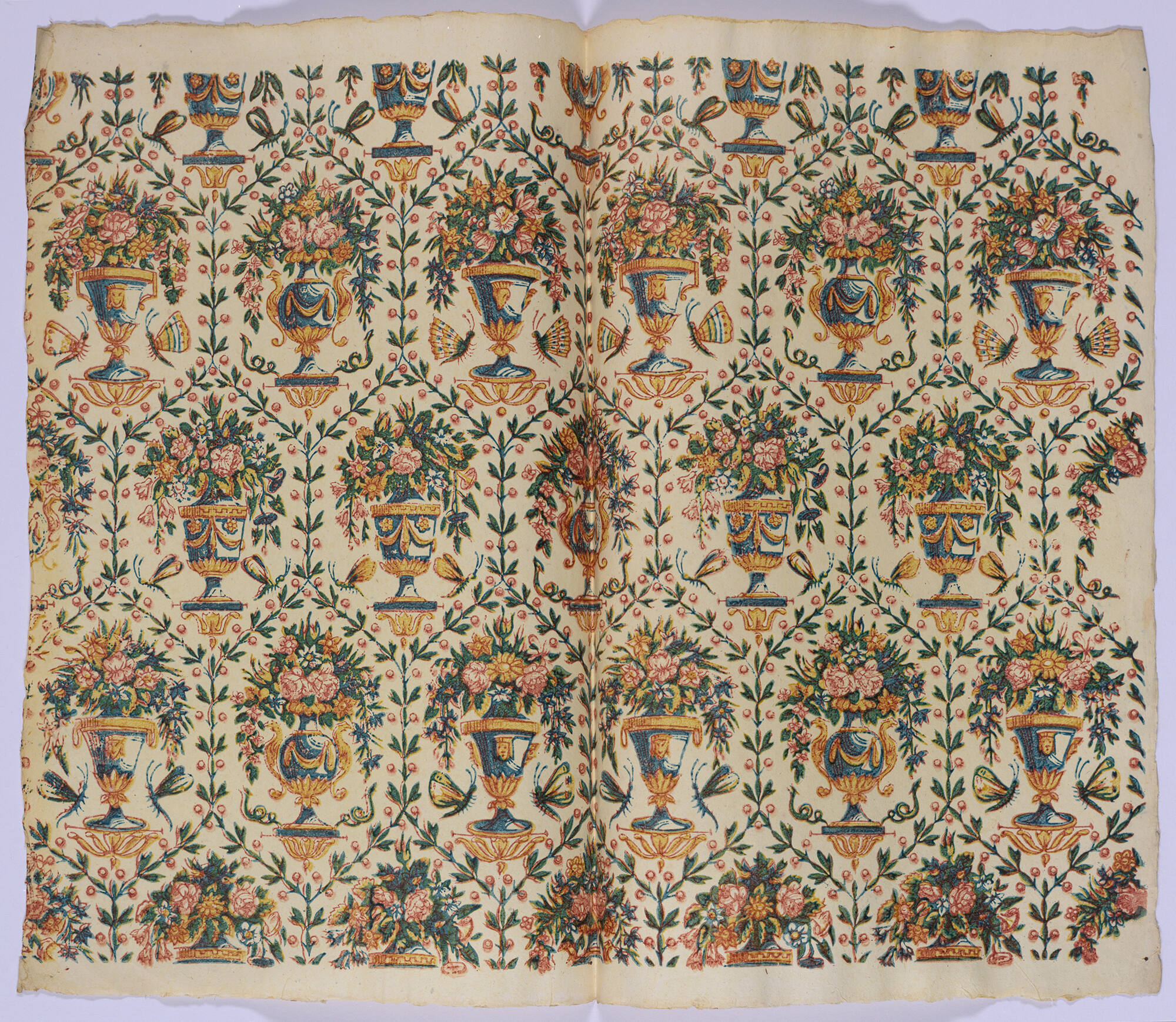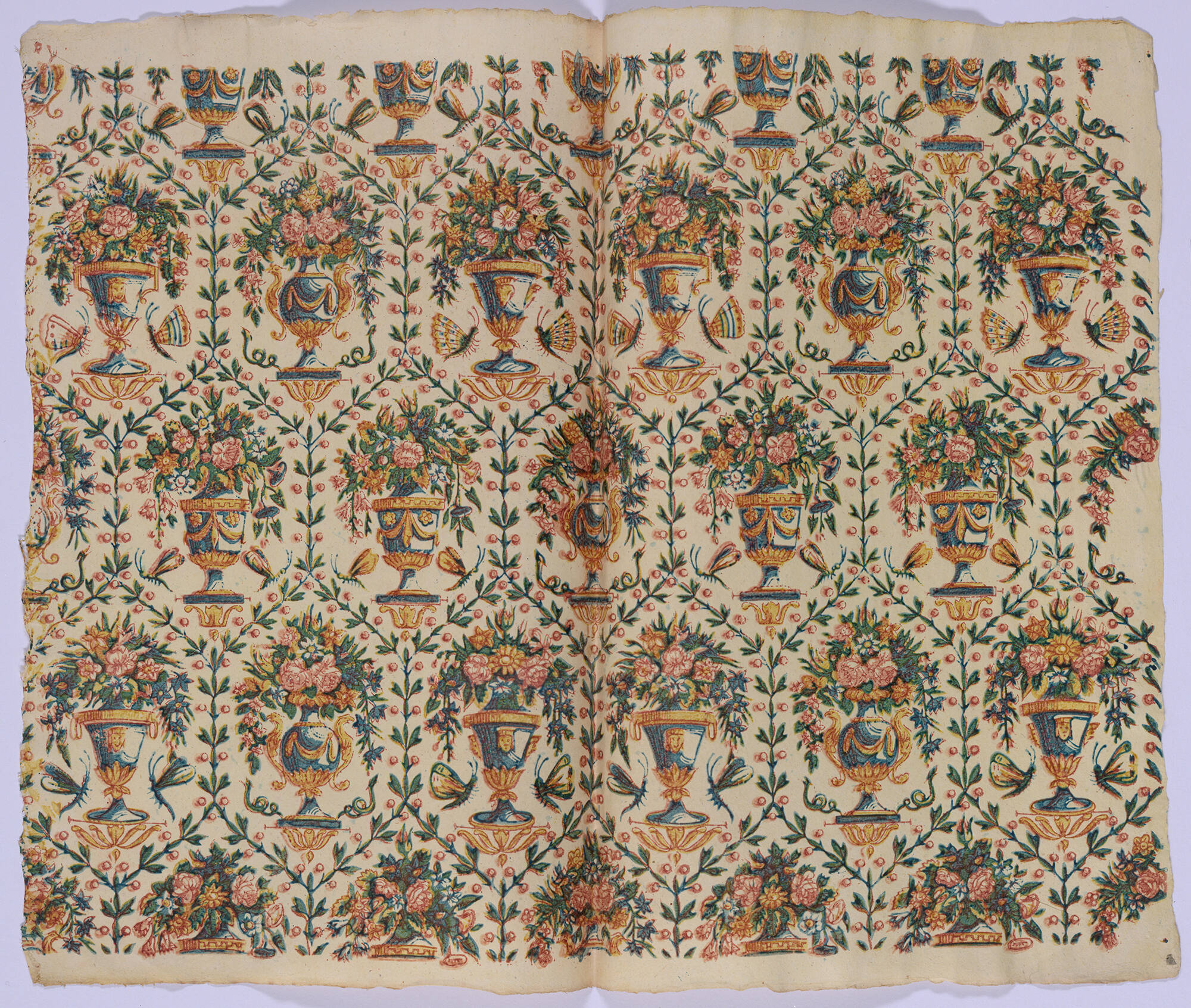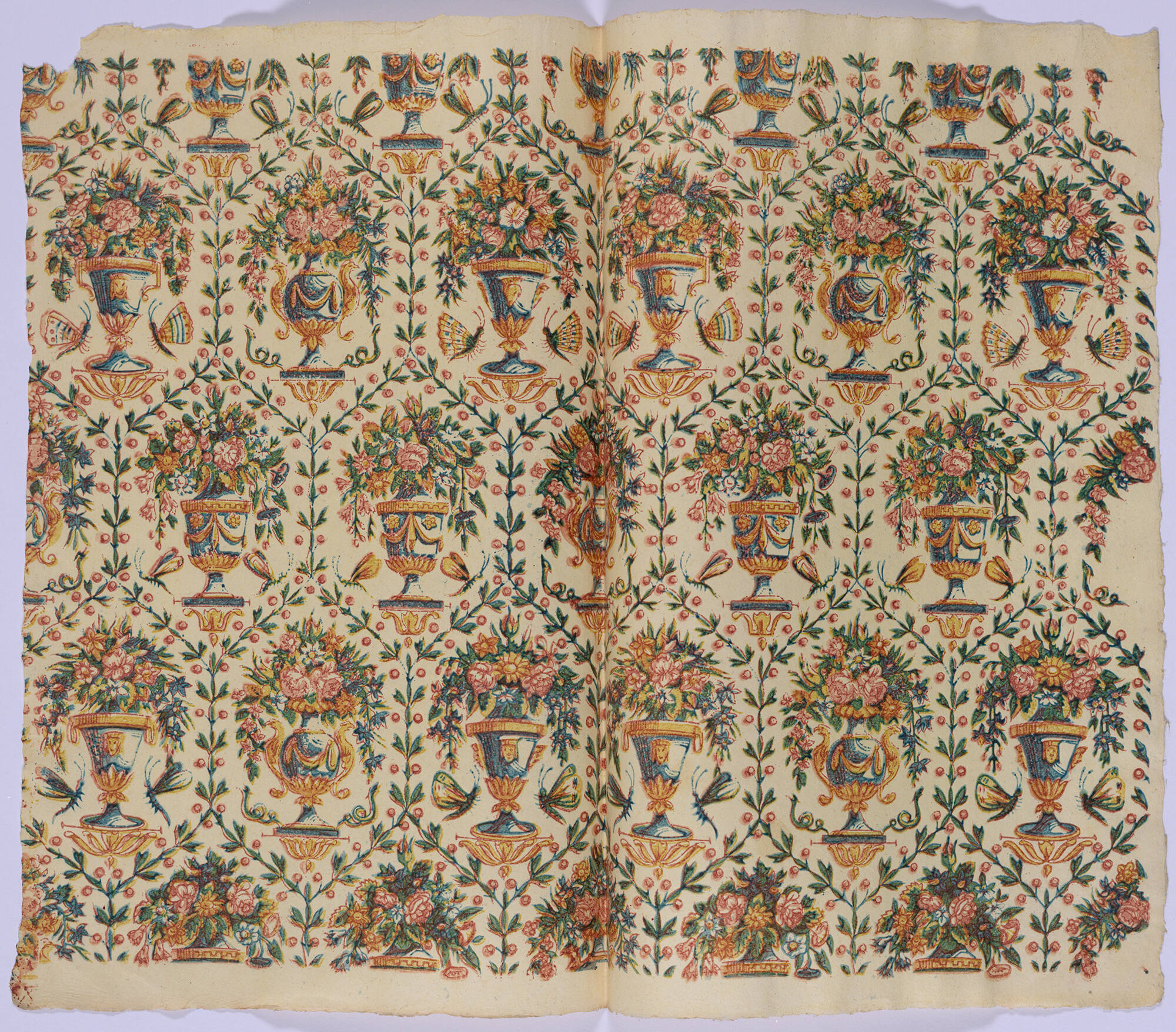Four Sheets of Wallpaper with Vases of Flowers, Butterflies, and Snakes