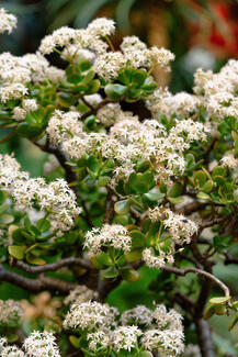 Crassula ovataThe Gardner Museum’s mature jades are covered in clusters of star-like flowers from late fall through early winter. The largest of the flowering jades, with trunks six inches in diameter, have been in the Gardner’s living collection since the mid-twentieth century. Isabella cultivated jade plants in her greenhouses at her home Green Hill in Brookline, Massachusetts alongside her impressive collection of bonsai trees.